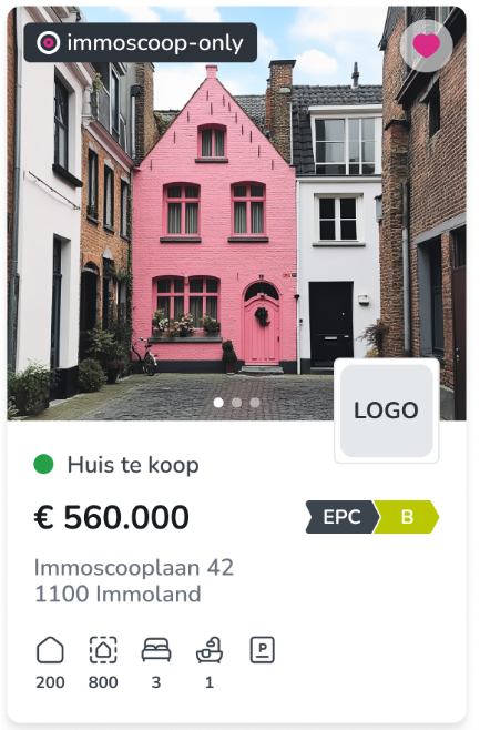 Plaats jij je panden enkele dagen exclusief online via Immoscoop Only? Dan ben je een echte ‘fan’ van Immoscoop. Boven op alle vermelde diensten plaatsen we dan ook je logo op de zoekertjes en kom je in aanmerking voor schattingsaanvragen.