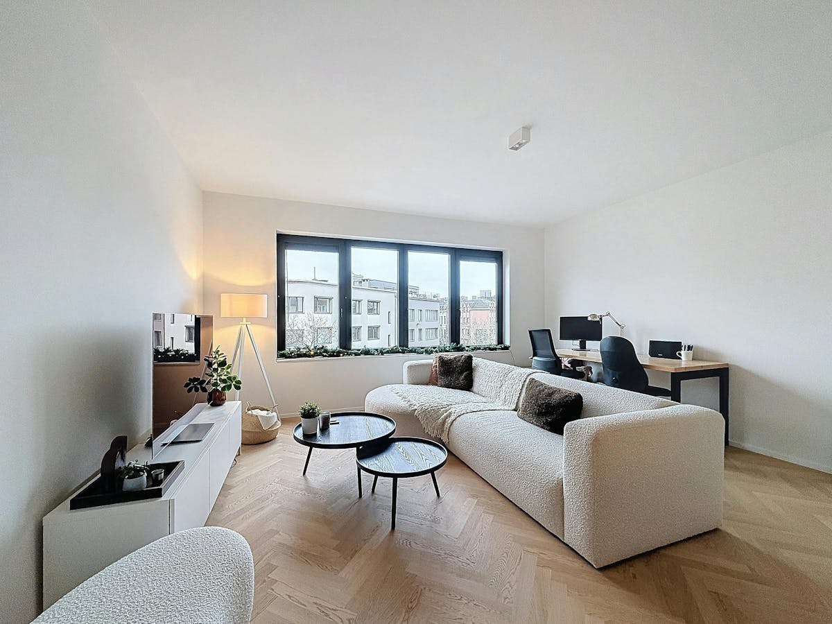 This modern one-bedroom apartment for rent has a living area of approximately 62 m² and is located on the 2nd floor of a small-scale building in the Kloosterstraat in Antwerp South. The absolute asset is the location in the trendy South. Numerous cozy restaurants and shops are in the immediate vicinity. In addition, accessibility to and from Antwerp is guaranteed by the proximity of the Leien and public transport. Moreover, it is close to the new South Park. Layout:- bright living space- open kitchen with all modern comforts- separate toilet- bedroom with ensuite bathroom- storageExtra benefits:- modern- favourable EPC label B- excellent mobiscore 9.4/10- lots of natural light- low common costs- small-scale buildingThe monthly costs are €25 per month for electricity and the maintenance of the common areasAre you interested in this apartment for rent in Antwerp? Do not hesitate to submit a visit request via our website via the red bar provided there. Always at your service to help you with all your questions about real estate.