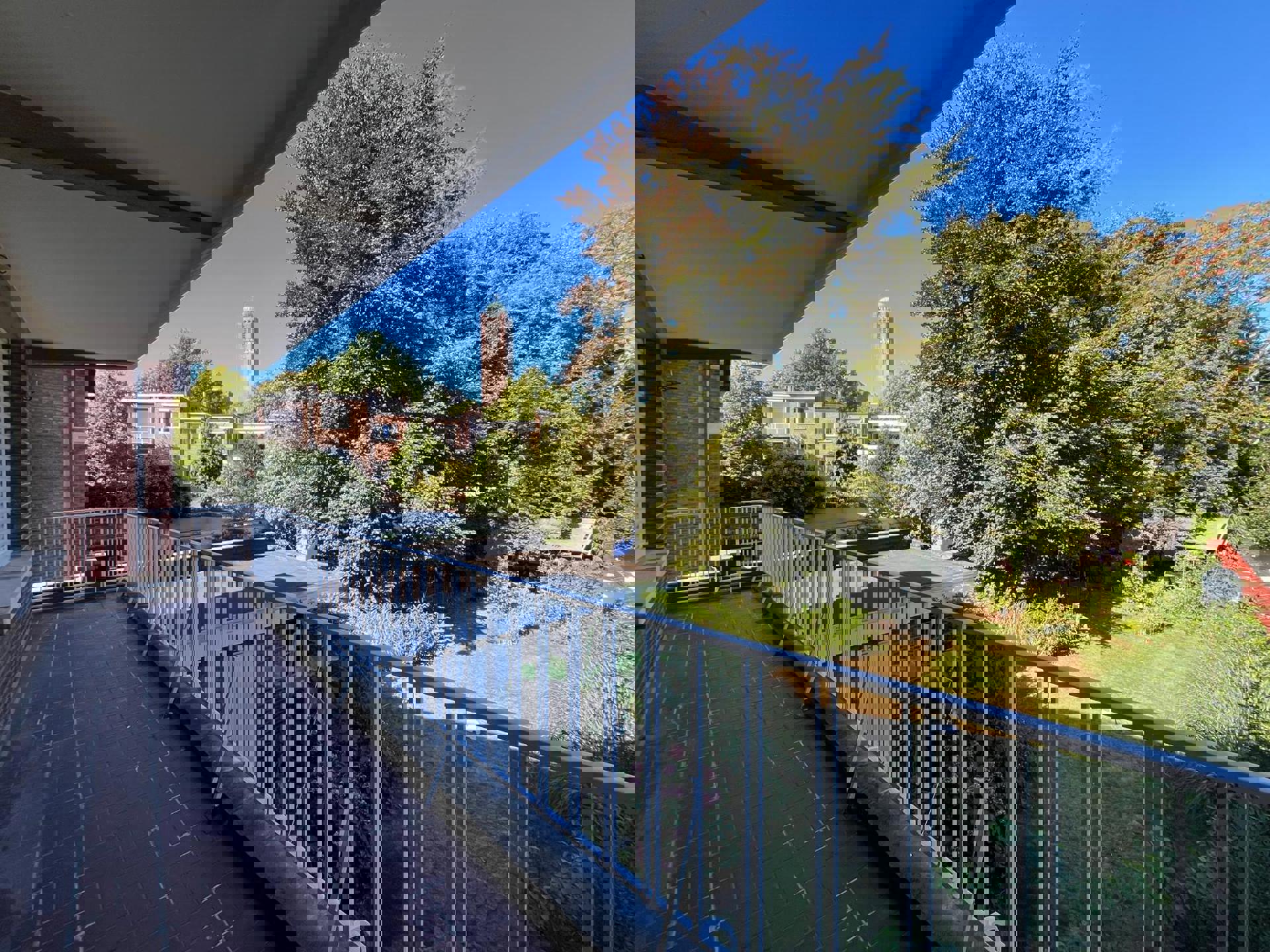 At the rear of the apartment are the master bedroom and kitchen, both with beautiful green views. The fully equipped kitchen also provides access to the wide terrace with enough space for a sitting area and a dining table. The master bedroom is located on the corner of the apartment and therefore enjoys plenty of natural light.