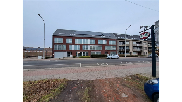 Een gelijkvloers appartement bestaande uit een woonkamer met open, ingerichte keuken, twee slaapkamers, badkamer, bergplaats, lift, terras, tuintje, overdekte autostaanplaats.
