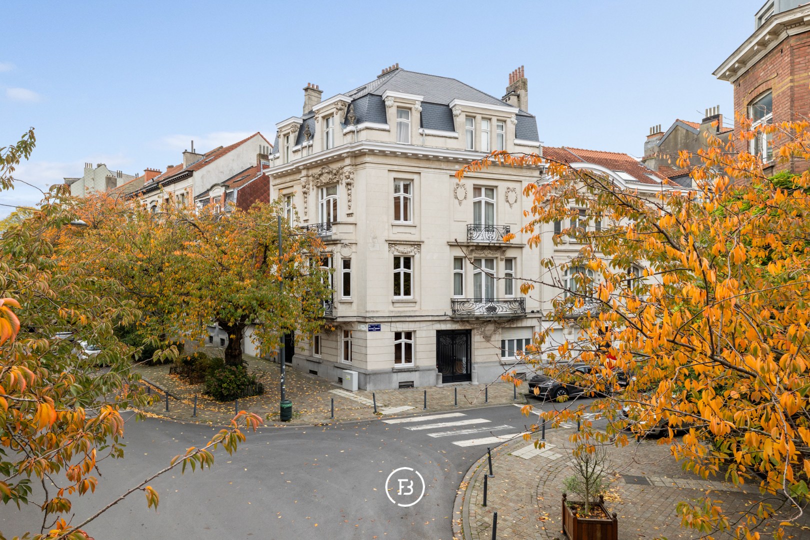 Situated between Ambiorix Square and the lively Plasky district, near Diamant and the Parc du Cinquantenaire, this exceptional three-façade townhouse was built in 1912 in refined Beaux-Arts style. With approximately 631 sqm of living space on a 220 sqm plot, the property offers a unique combination of elegance, space, and authenticity. The main entrance on the prestigious Avenue Émile Max leads into a world of refined architecture and timeless charm. Numerous authentic features have been carefully preserved: original parquet floors, richly decorated fireplaces, fine moldings, stained glass doors, wrought ironwork, frescoes, and ornamental details all attest to exceptional craftsmanship. The magnificent living spaces are characterized by high ceilings, generous volumes, and abundant natural light, creating a sense of grandeur and harmony. This property is perfectly suited for versatile use – as a prestigious family residence, office space, or a representative mixed-use building.