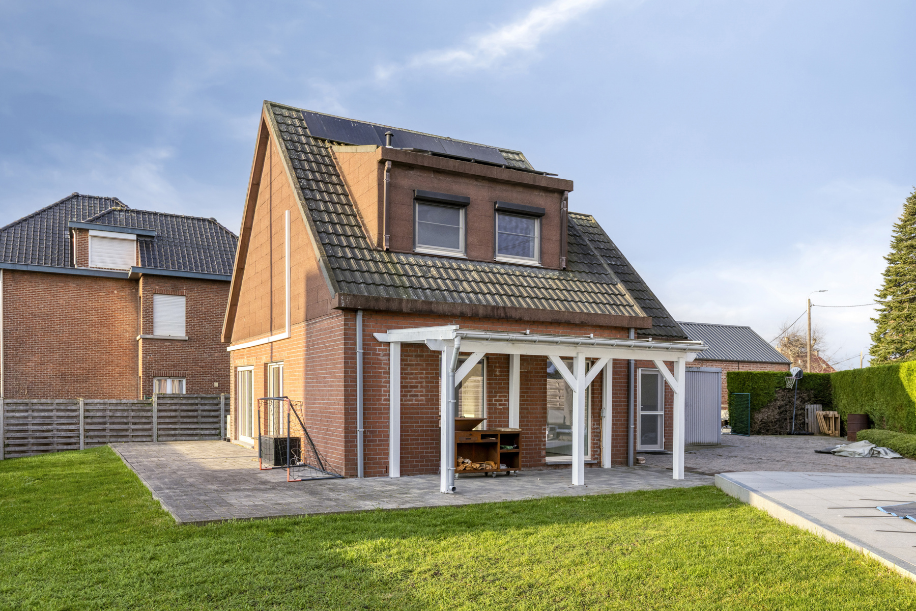 Outside, it's pure enjoyment: the garden features a large terrace with a canopy and a wonderful swimming pool, ideal for sunny summer days. The house is also energy efficient thanks to the solar panels + battery.