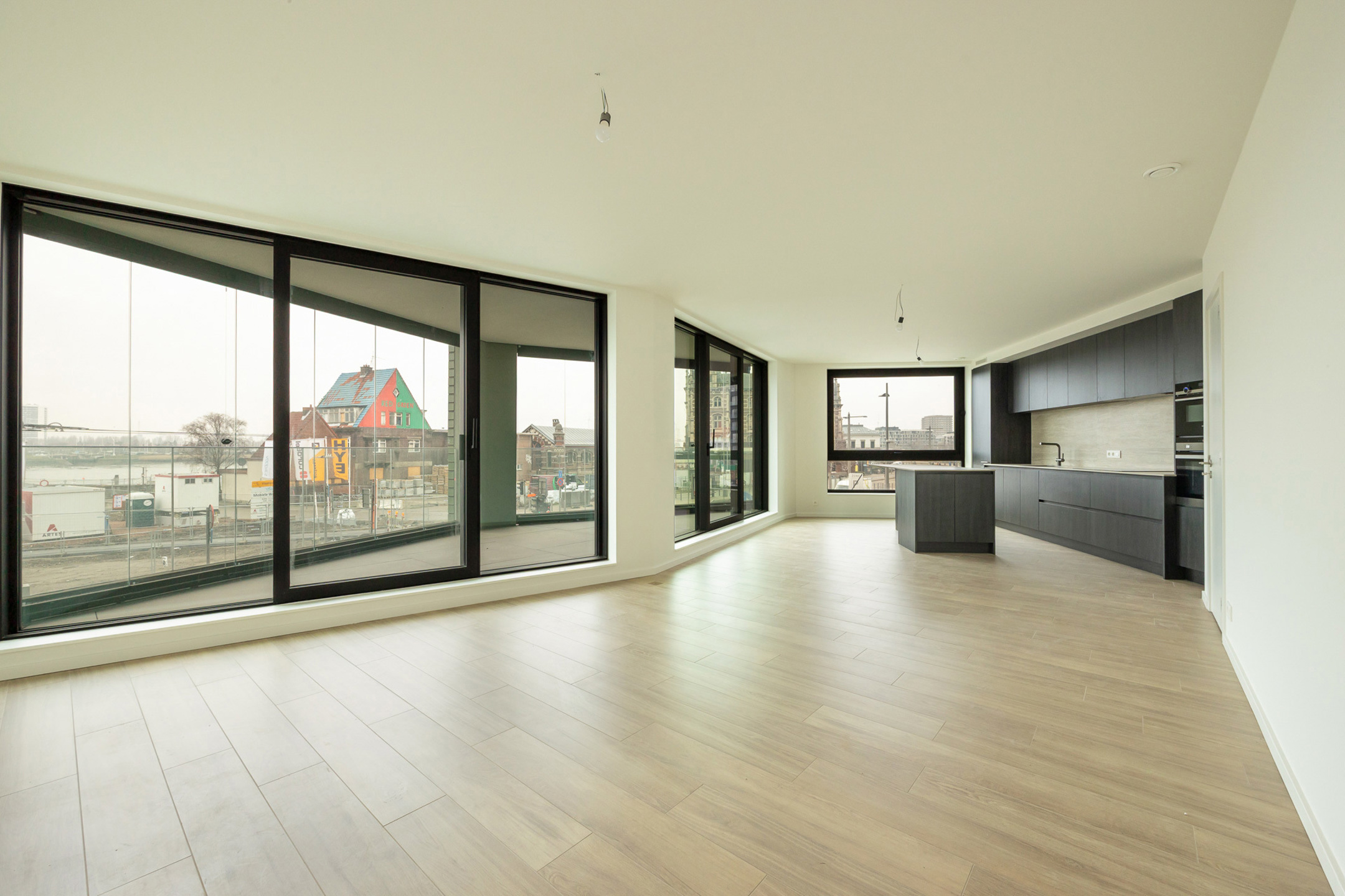In addition to the commercial space on the ground floor, this new-build project on the Van Meterenkaai has 24 residential units. Each floor will consist of two spacious two-bedroom apartments of 95 m² or 110 m² and one one-bedroom apartment of 50 m², each with large terraces and panoramic views.