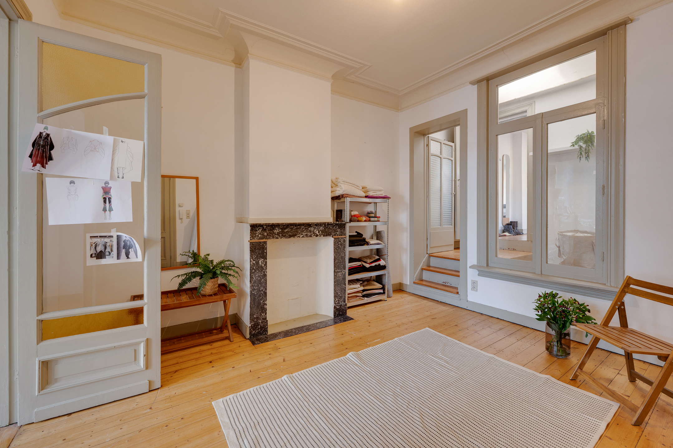 Zodra je binnenkomt voel je het meteen: dit pand heeft geschiedenis. De houten vloeren zijn doorleefd zonder oud te zijn, de sierschouw staat hier als stille getuige van generaties die hier eerder woonden, en de hoge plafonds laten elke ruimte ruimer en luchtiger voelen. Licht glijdt binnen langs hoge ramen, en alles straalt die rustige harmonie uit die zo typisch is voor herenhuiswoningen.