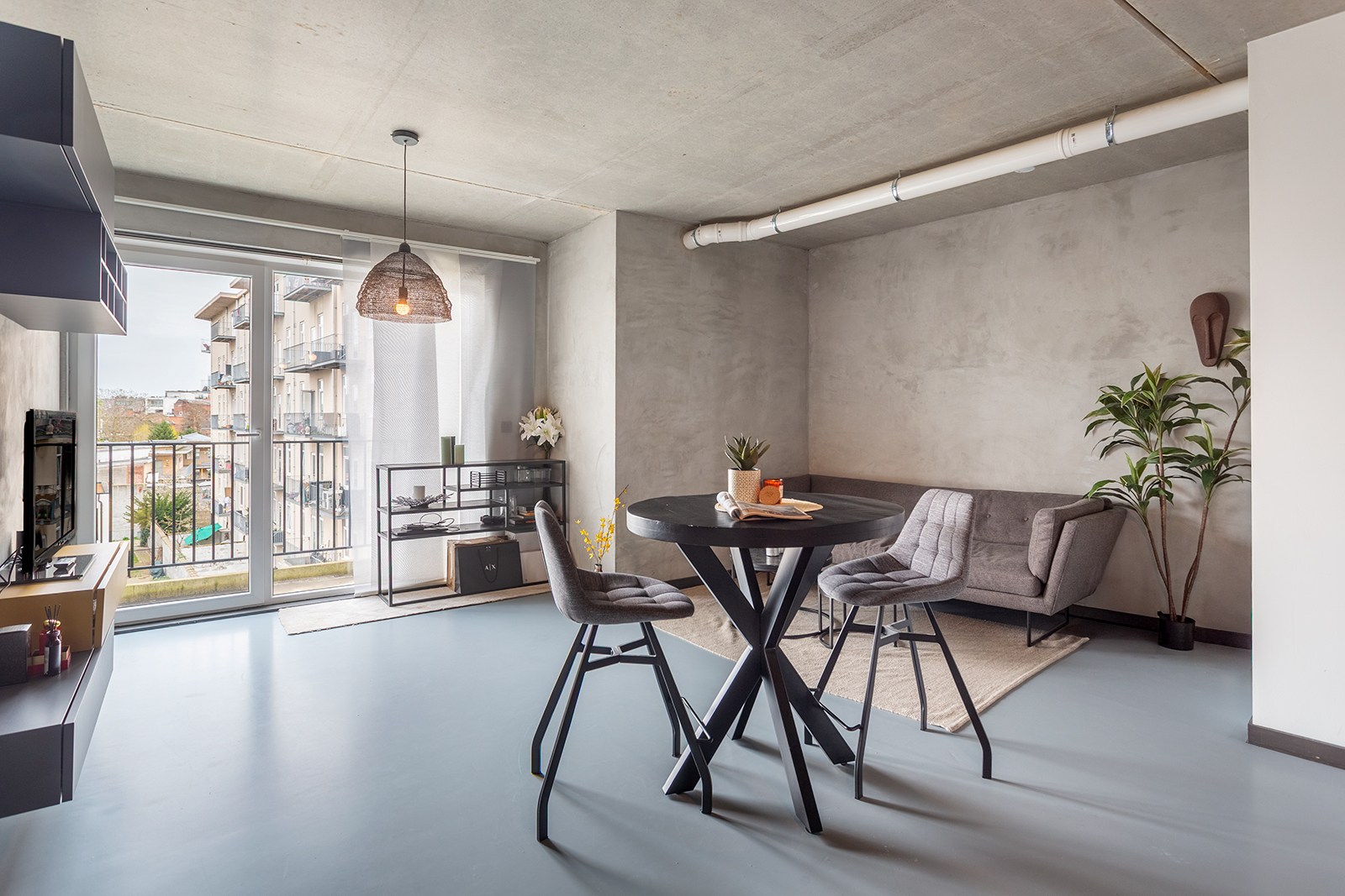 Dit recent en energiezuinig appartement (bouwjaar 2022) op de derde verdieping straalt een hedendaagse, industriële stijl uit met strakke afwerkingen en een open gevoel. De leefruimte sluit naadloos aan op de moderne open keuken, wat zorgt voor een aangename woonbeleving. Vanuit de leefruimte heeft u toegang tot het terras aan de achterzijde van het gebouw, waar u in alle rust kan genieten. Het appartement beschikt over één volwaardige slaapkamer en een stijlvolle badkamer die voorzien is van een lavabo en inloopdouche. Daarnaast beschikt het appartement over een apart toilet en een praktische berging. De aansluiting voor een wasmachine is voorzien in de leefruimte.