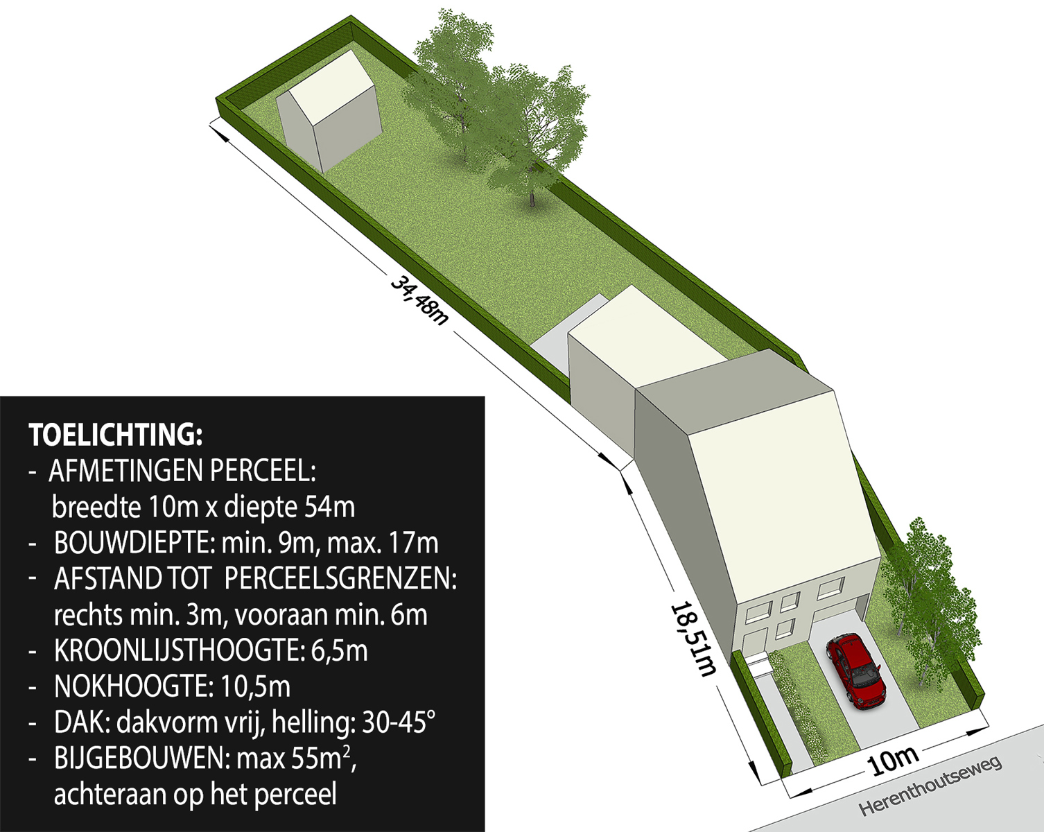 - Bouwbreedte resulteert in een maximale gevelbreedte van 7 meter (3m zijdelingse afstand)