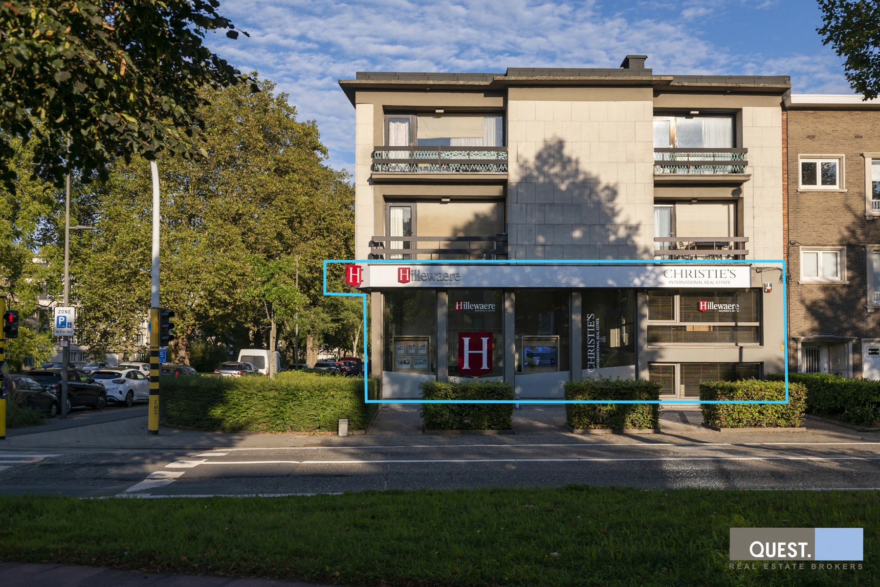 Volledig ingericht kantoor gelegen op een unieke locatie op de hoek van de Prins Boudewijnlaan en Ringlaan te Wilrijk;. Ca 136 m² op 3 interne niveaus met 17 m gevelbreedte aan de straat . Prachtige lichtinval, talrijke glaspartijen en hoge zolderingen. Stijlvolle functionele inrichting, keuken en sanitair. Airco rondom, privatieve CV, aangelegd computernetwerk, alarmsysteem. Ruime ondergrondse (archief) bergruimte.