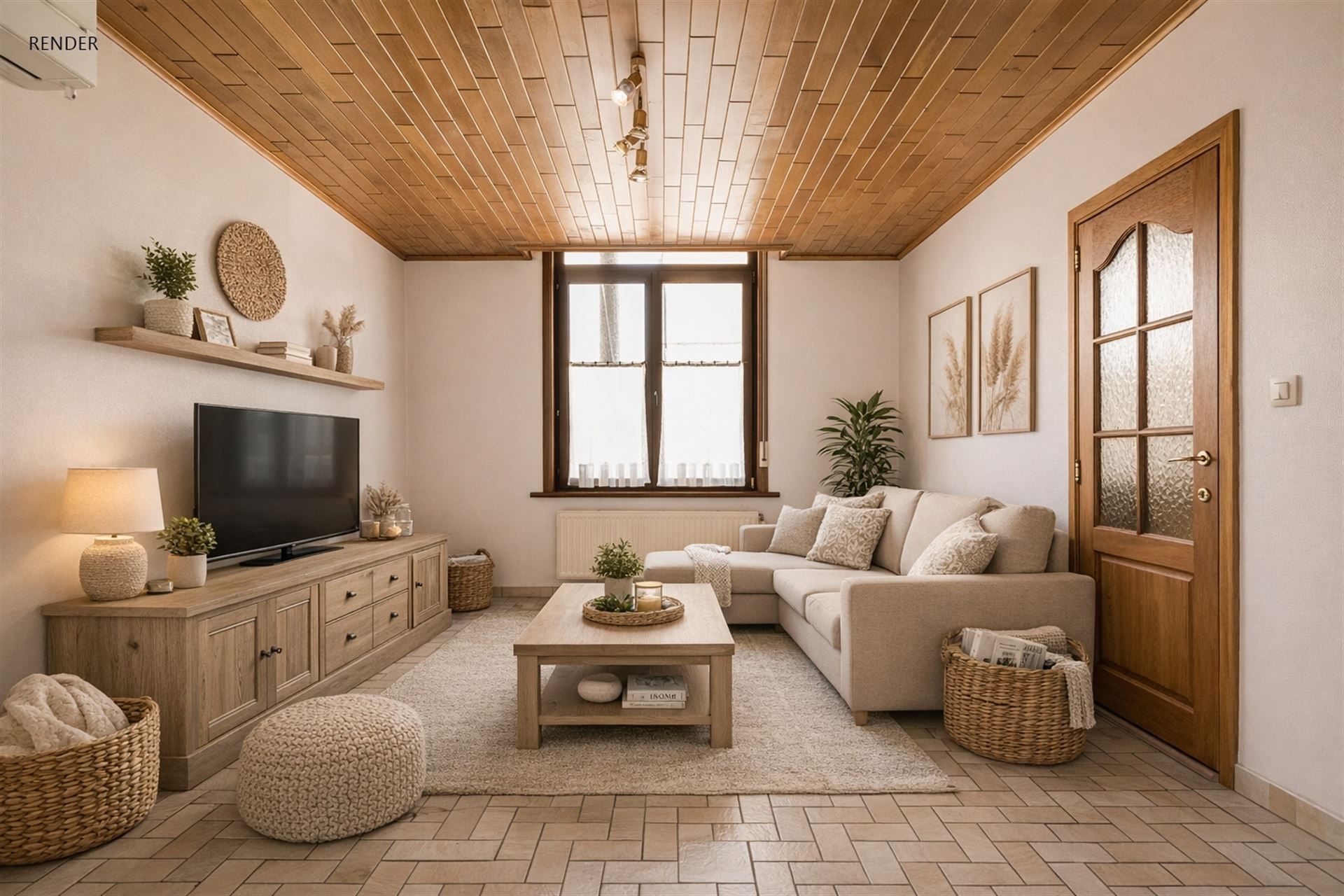 From the hallway with large built-in cupboard you have access to the storage room, the bathroom and the lovely garden. The garden can also be accessed from the side of the house and has a garden shed ideal for bikes and gardening equipment. Additional storage space can be found in the dry cellar.