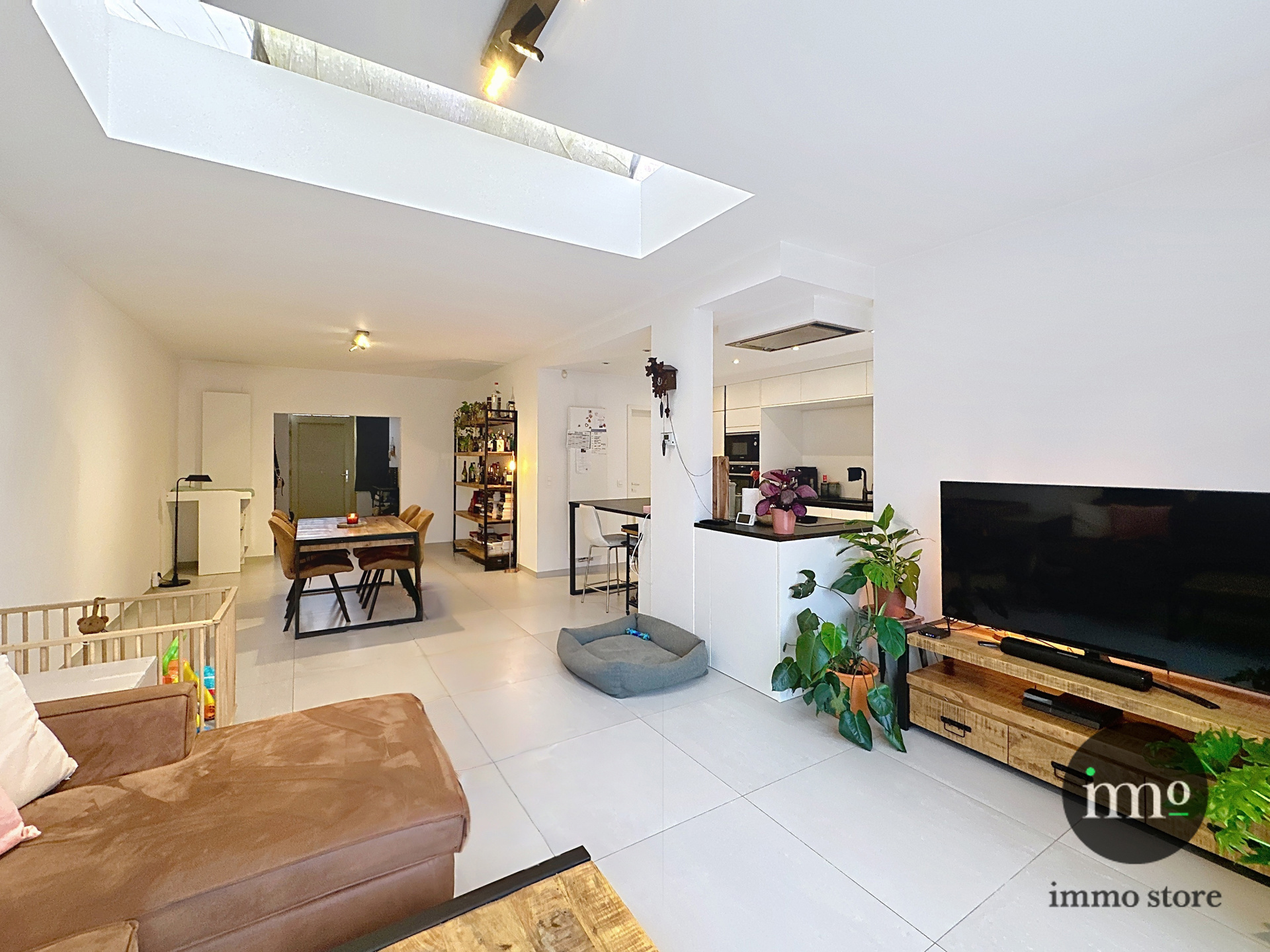 Upon entering, you are welcomed into a well-maintained entrance hall with a guest toilet. The property features an exceptionally SPACIOUS and LIGHT-FILLED living area with a LARGE SLIDING WINDOW opening onto the WEST-FACING GARDEN – perfect for enjoying the AFTERNOON and EVENING SUN. The OPEN, FULLY EQUIPPED MODERN kitchen connects seamlessly to the living space and forms the heart of the home.