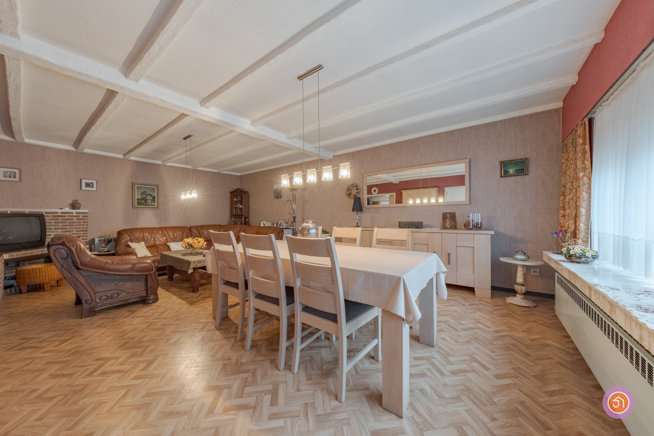 We komen binnen via de inkomhal die toegang geeft tot de aangename en lichtrijke leefruimte, met aansluitend de geïnstalleerde, ruime keuken. De keuken werd reeds vernieuwd in 2007. Verder vinden we op het gelijkvloers nog een gastentoilet en een praktische berging waar zich de aansluiting bevindt voor was- en droogmachine.