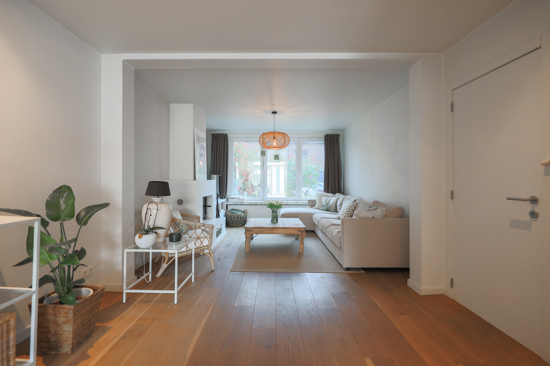 Binnen word je verwelkomd in een lichtrijke leefruimte met een gezellige zithoek vooraan en voldoende plaats voor een grote eettafel achteraan. Hier ontstaan lange diners, spelletjesavonden en ontspannen zondagen.