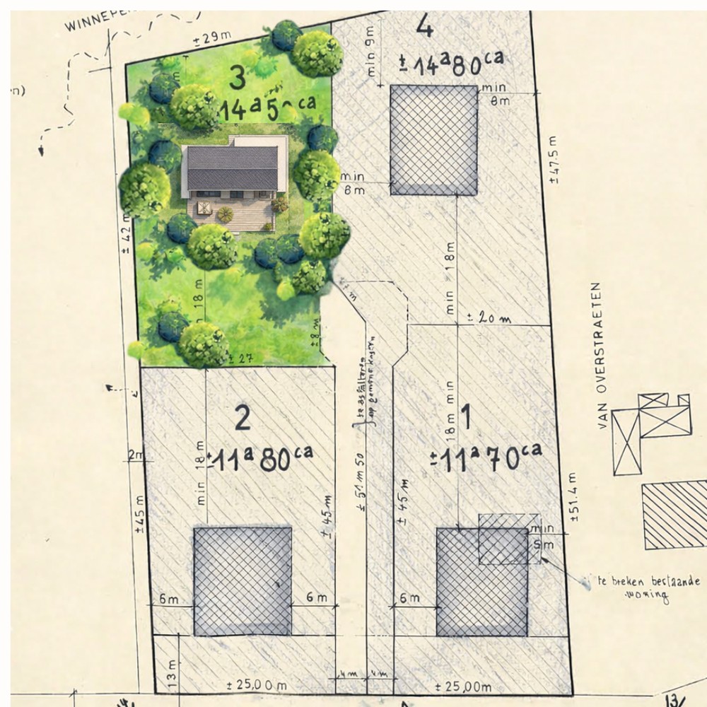De inventarisatie van de bomen is reeds gemaakt. Men koopt een grond zonder bouwverplichting en klaar om te bouwen. Dit is ook ideaal als investering.