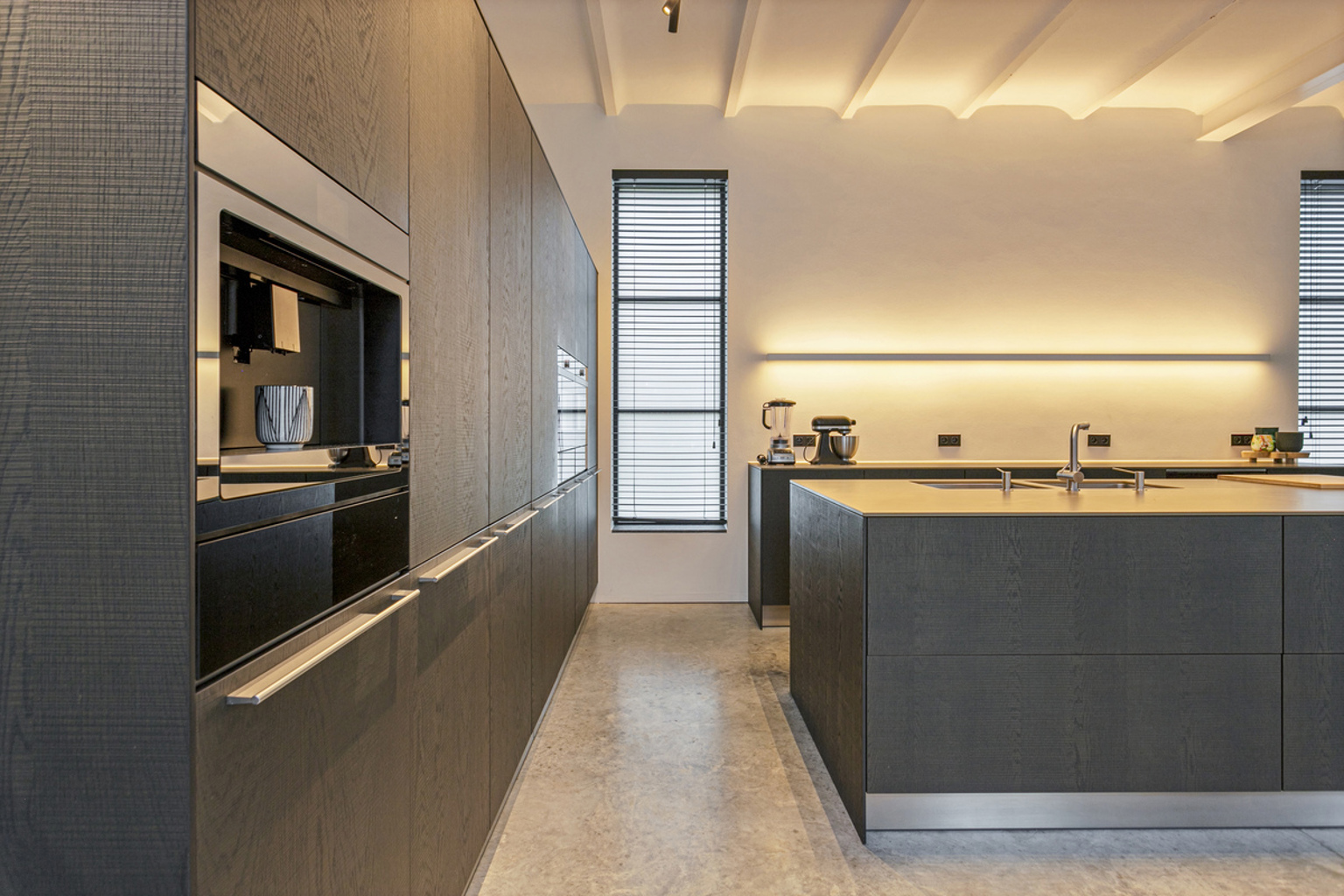 Gelijkvloers: inkomhal, zitkamer, open keuken met eiland, eetkamer en zithoek, toiletruimte, berging, was- en technische ruimte, stoomcabine