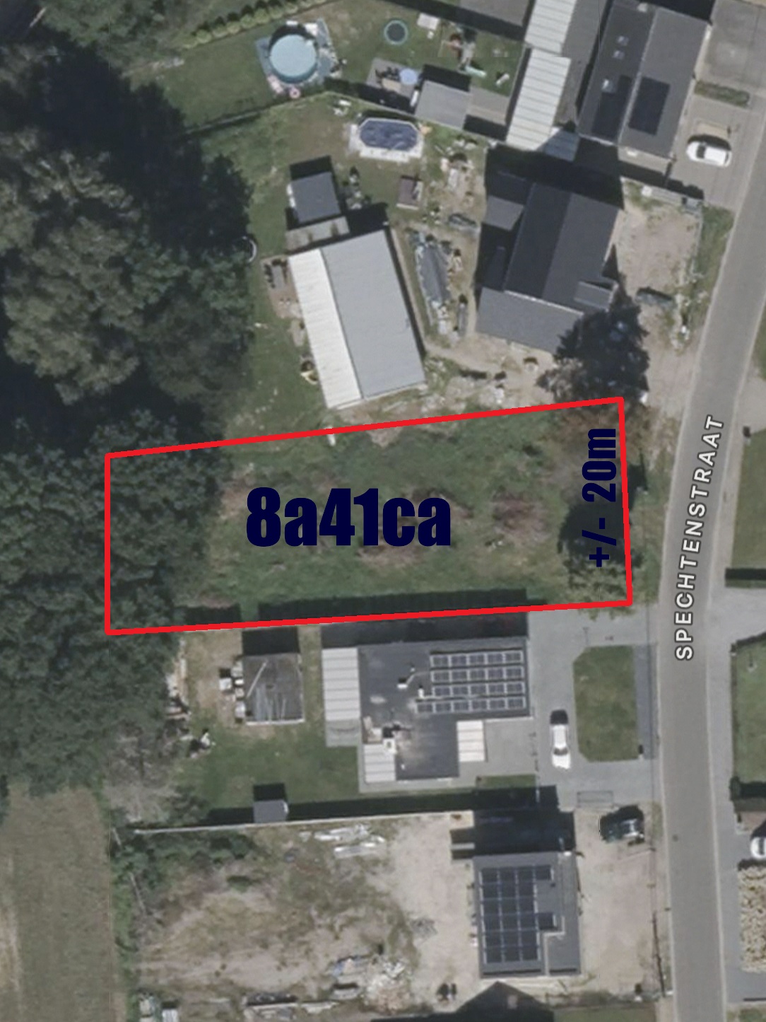Bouwgrond voor open bebouwing in de Spechtenstraat te Hechtel, gelegen in een bosrijke en groene omgeving.