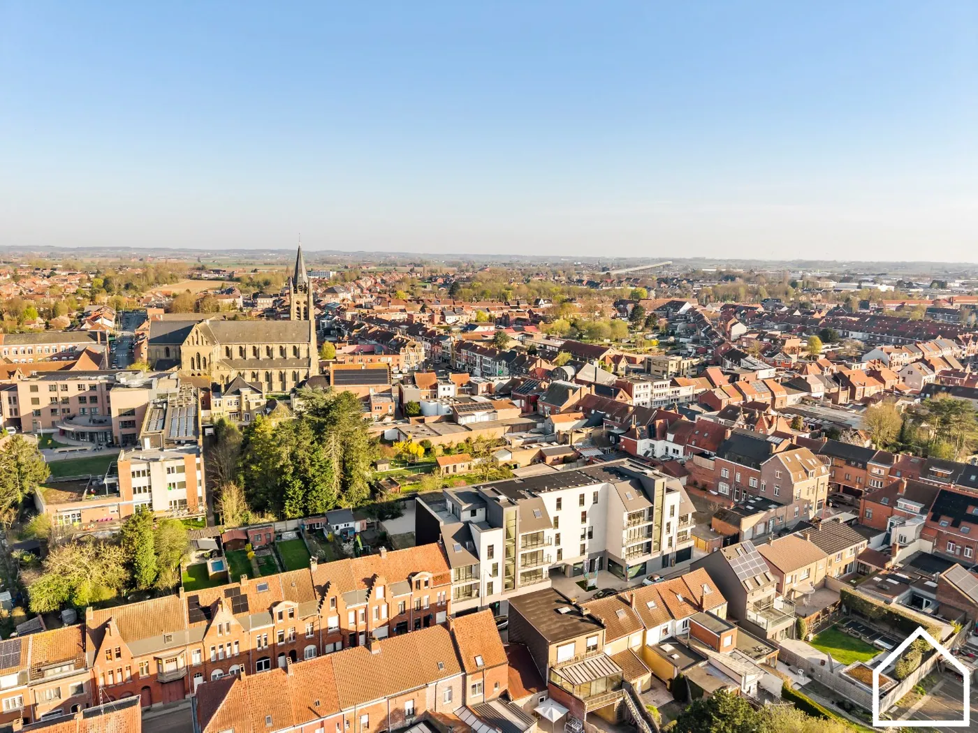 Prachtige penthouse van 129,20 m² op de vierde verdieping bestaande uit een inkomhal met vestiaire en WC, berging en wasruimte, zeer ruime living met veel lichtinval via de voor- en achterzijde van het gebouw, open keuken, 2 ruime slaapkamers, badkamer en WC. Terras van 50 m² op het zuidwesten en een tweede terras van 15,88 m² met uitzicht op het noordwesten.