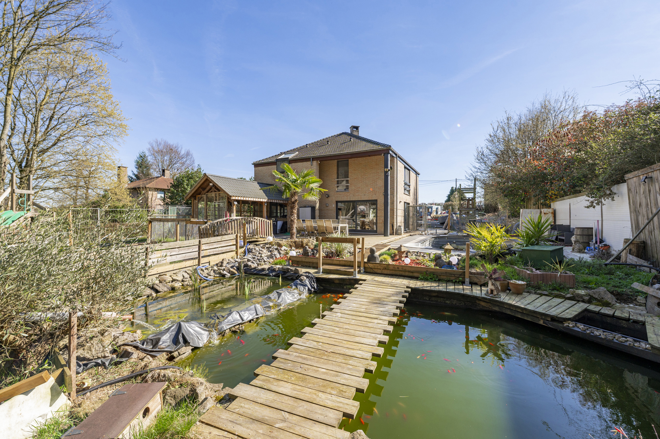 Elle se compose comme suit : Au rez-de-chaussée : un hall d’entrée, un salon lumineux de +- 20 m², une salle à manger de +- 20 m², une cuisine équipée rénovée en 2021 (électroménagers Bosch : four, taque vitrocéramique, hotte avec moteur externe, micro-ondes, frigo américain) de +- 19 m², un bureau de +- 12 m² ainsi qu’une salle de sport/buanderie de +- 24 m² & un WC séparé. Au premier étage : un hall de nuit desservant 3 chambres de +- 20, 18 et 15 m², dont une qui possède un sauna pour 2 personnes. Une salle de douche avec emplacement pour un jacuzzi de +- 13 m², une pièce modulable de +- 28 m² & un WC séparé. À l’extérieur, vous profiterez d’une terrasse, un jardin & une piscine chauffée.