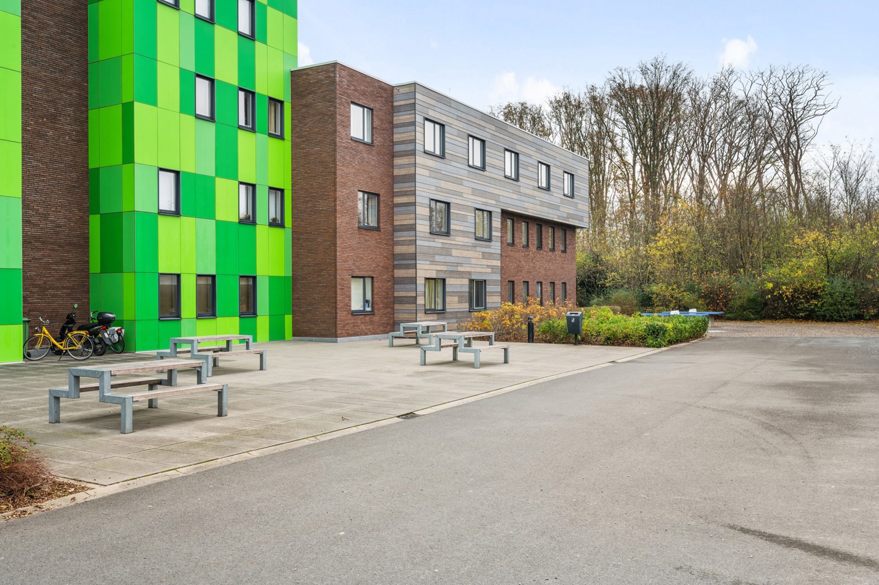 De indeling is als volgt: lichtrijke kamer met privé badkamer (douche, lavabo en toilet), gemeenschappelijke keuken met eigen lokker (met slot) en een gemeenschappelijke leefruimte.