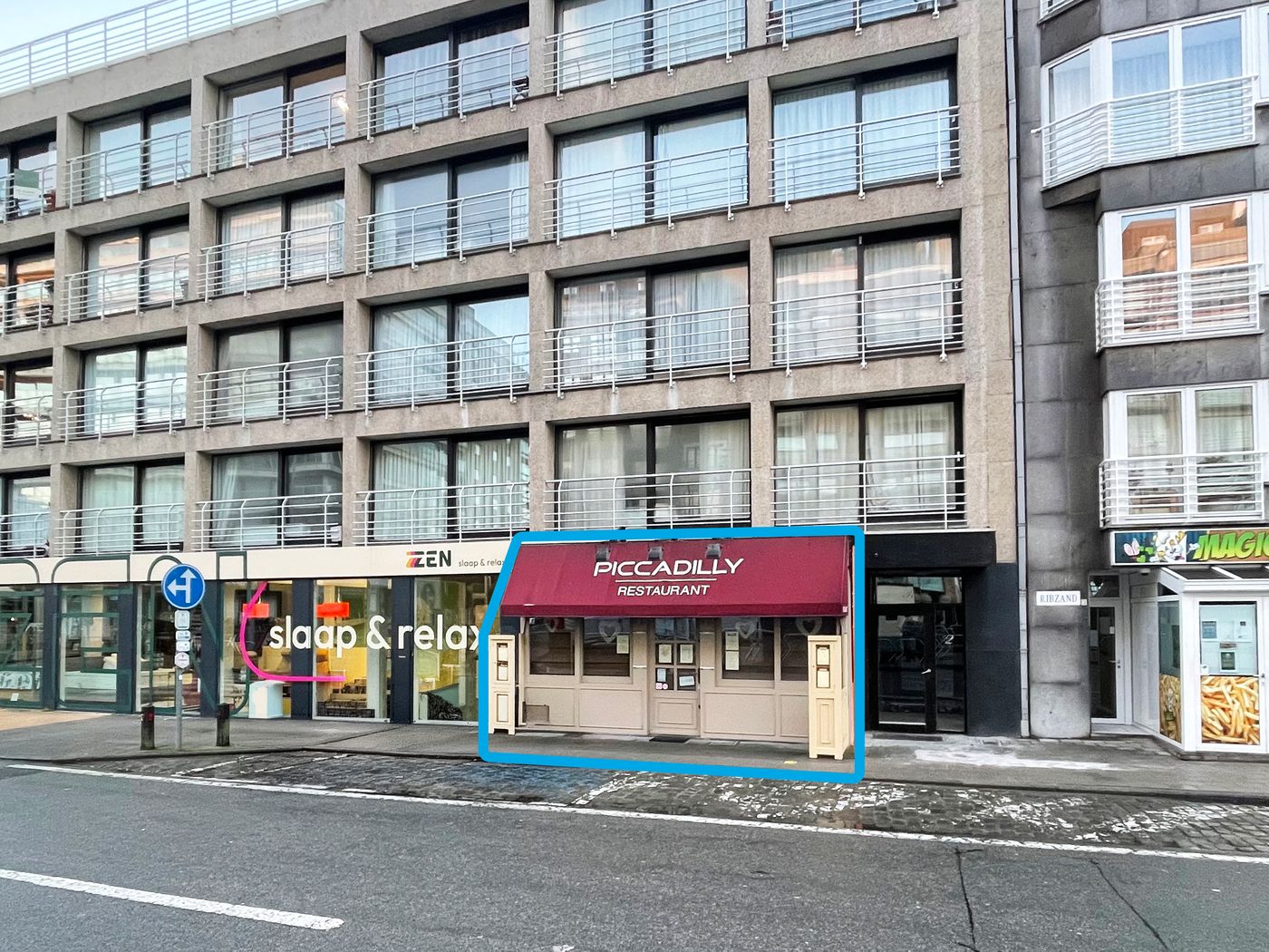 Dit aantrekkelijk pand geniet van een sterke visibiliteit dankzij de ligging in het centrum van Wenduine, vlakbij openbaar vervoer en zeedijk.