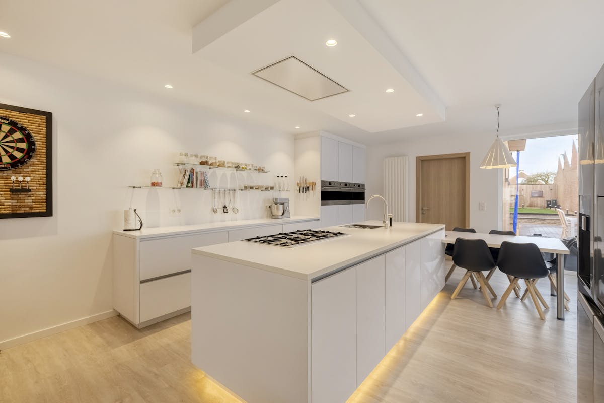This fully renovated semi-detached house is located in a quiet but very central location, near the E17, supermarkets, swimming pool and other facilities.The house was stripped down to the structural level and thoroughly renewed, including a completely new extension. High ceilings, lots of light and a high-quality finish ensure a modern and pleasant living experience.On the ground floor, we find the entrance hall and a spacious, bright living room with dining area and stylish closet. The modern kitchen is equipped with a cooking island, built-in stove, steam oven and numerous built-in cupboards. Through the sliding window, you have direct access to the terrace and the fully enclosed garden with no view. Next, there is a practical storage/laundry room and a guest toilet.On the first floor, there are two bedrooms and a bathroom with large furniture, bath and toilet. The second floor is furnished as a spacious master bedroom with built-in wardrobes, separate shower room and sink.The house is equipped with a Loxone home automation system for automatic control of lighting, heating, shutters, alarm system and energy management.In addition, there is a newly built and fully insulated garden house/workshop.Thanks to the extensive energetic renovation including floor, wall and roof insulation and solar panels, this home achieves an excellent EPC label B.You can consult Dewaele DIY's general terms and conditions at any time via dewaele.com