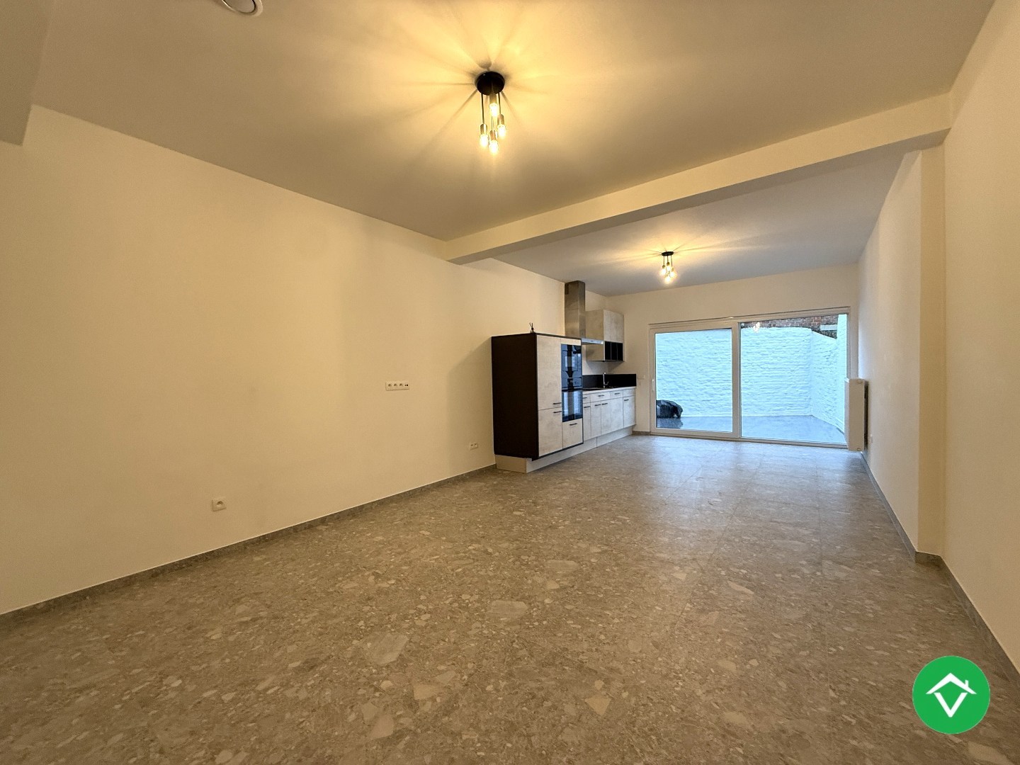De indeling is als volgt: inkomhal - apart toilet - eerste, gelijkvloerse slaapkamer - lichtrijke living - volledig uitgeruste keuken - terrastuin.