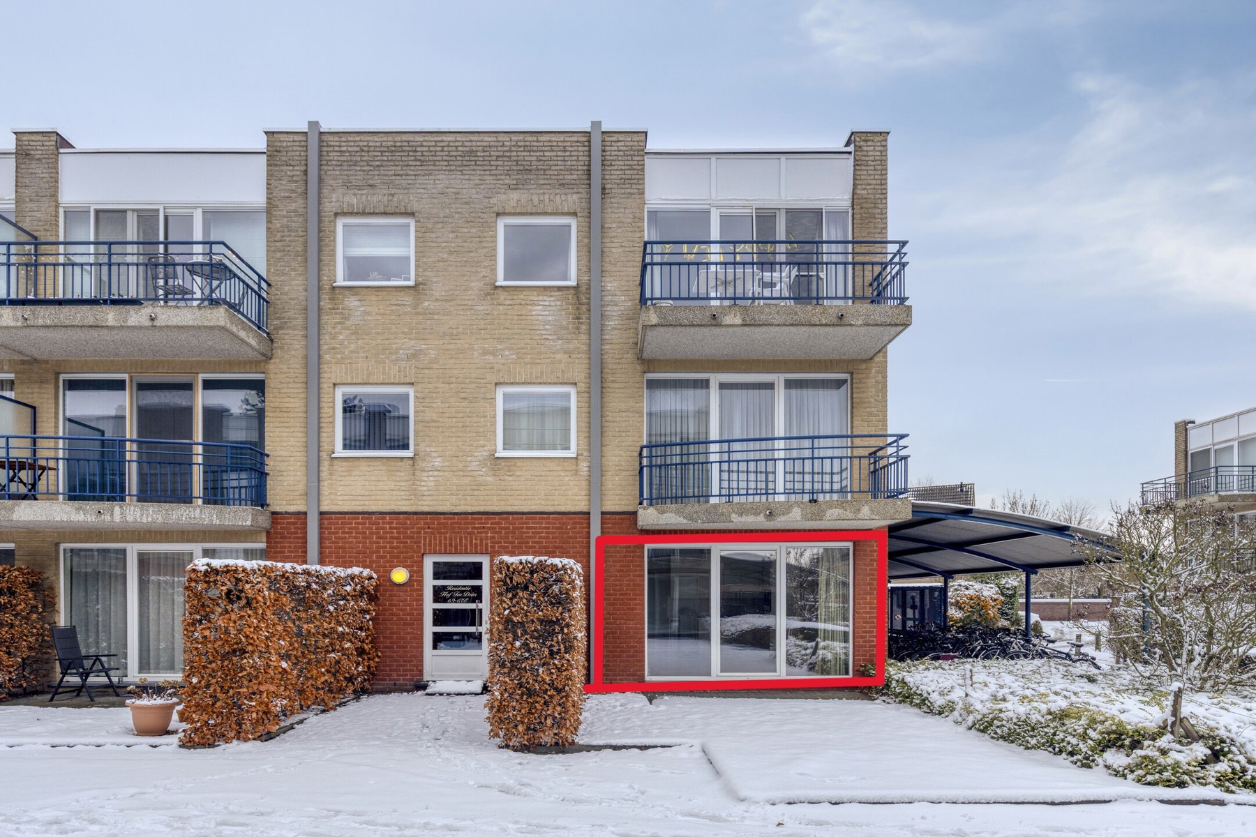 Een autostaanplaats in de ondergrondse, afgesloten garage is verplicht mee aan te kopen voor de prijs van 27.000 euro.