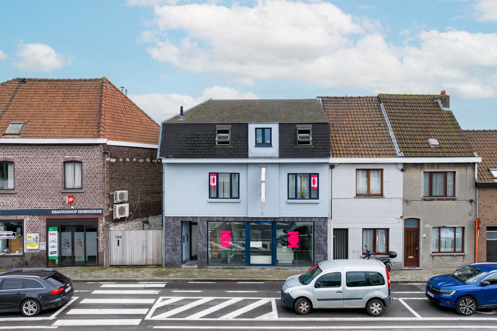 Gelegen op een boogscheut van Gent bevindt zich dit handelspand met een oppervlakte van ca. 75m2, ze beschikt over een zichtbare etalage, koertje en geniet een open indeling. Een kitchenette en apart toilet zijn aanwezig. Te bereiken via een aparte ingang bevindt zich op de 1ste verdieping een recent gerenoveerd duplex appartement (102m2), deze geniet volgende indeling: inkom met gastentoilet en aparte wasplaats, leefruimte met open keuken. Op de 2de verdieping bevinden zich 3 slaapkamers en een badkamer met douche, toilet en lavabo.