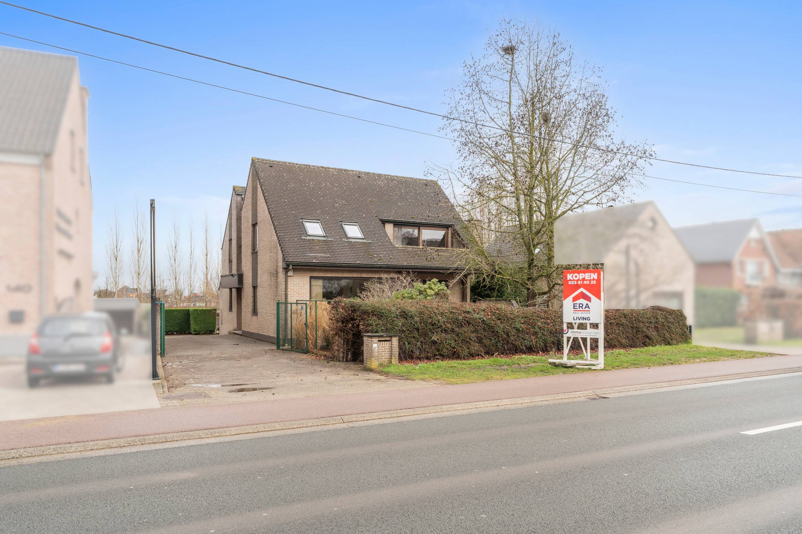 Achteraan vind je ruimte om meerdere voertuigen te stallen of extra tuin te creëren, een dubbele garage van 31m² met automatische en extra hoge poorten (geschikt voor een Sprinter), en een overdekt terras met bar en bijkomende bergruimtes.