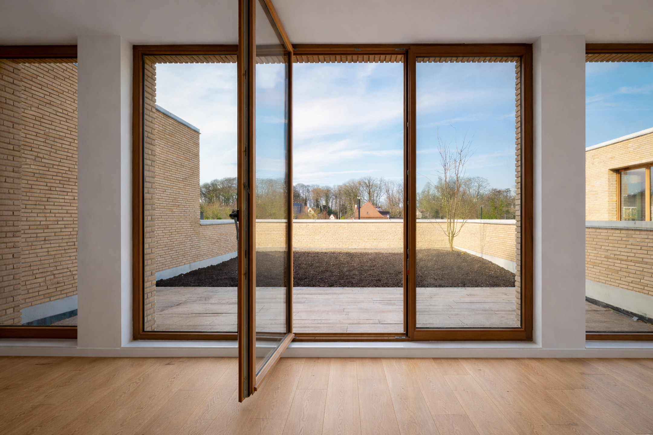 The project comprises sixteen homes, including six duplexes, with floor areas ranging from 62 m² to 172 m² and a choice of one, two, or three bedrooms. Spacious terrace gardens of up to 66 m² and roof terraces with 180° views enhance the openness and outdoor feeling. Completion is scheduled for March 2026.