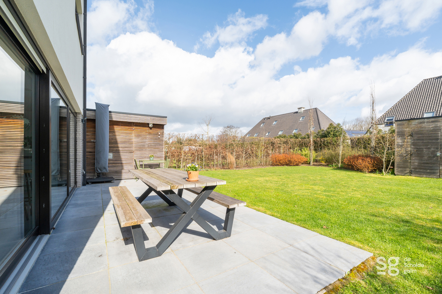 De tuin is een echt rustpunt. Dankzij de gunstige oriëntatie kunt u hier de hele dag door van de zon genieten. Het is de ideale plek voor een zomerse BBQ of een rustig moment met een goed boek.