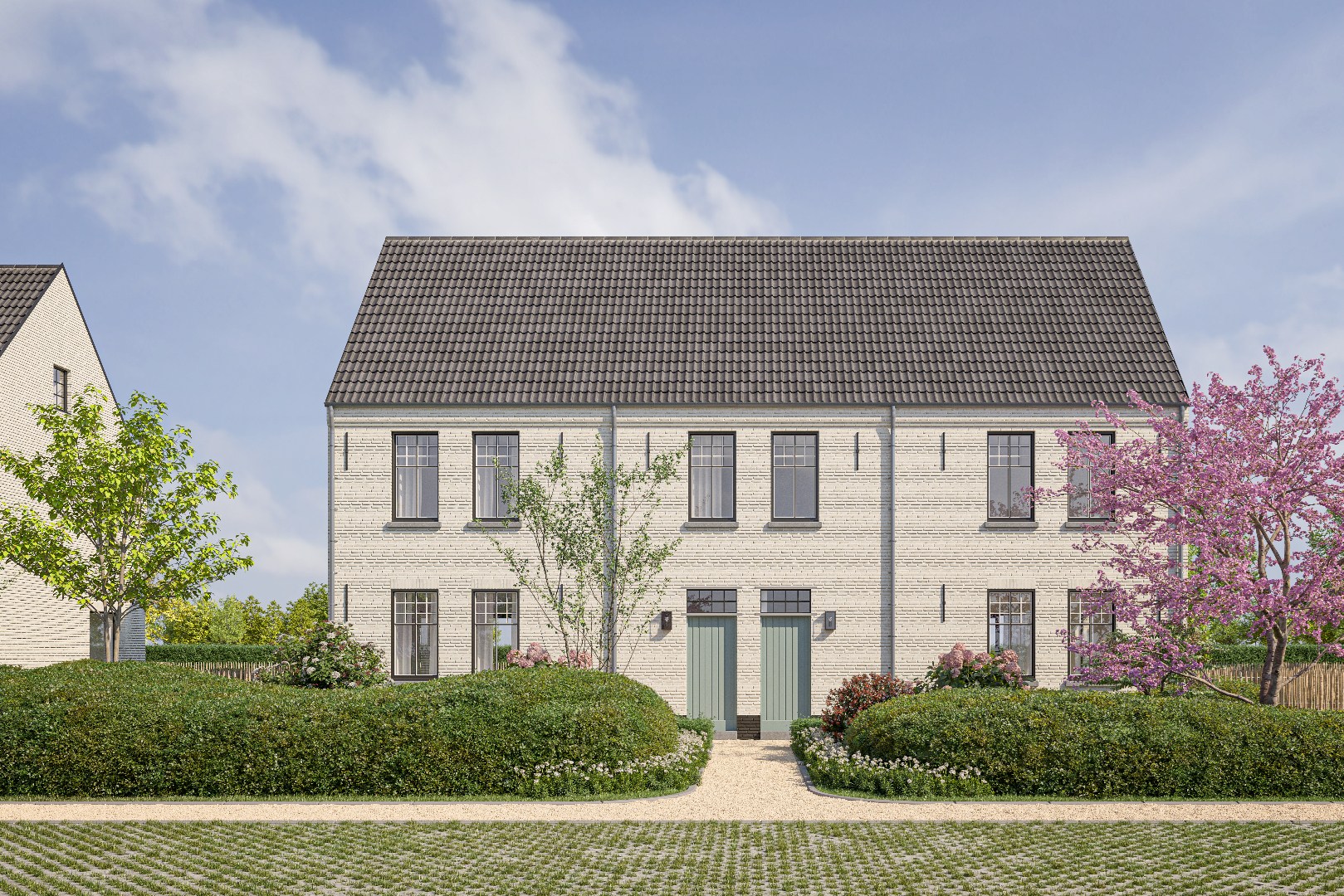 Deze stijlvolle eigentijdse woningen kijken allemaal uit op de weilanden..
