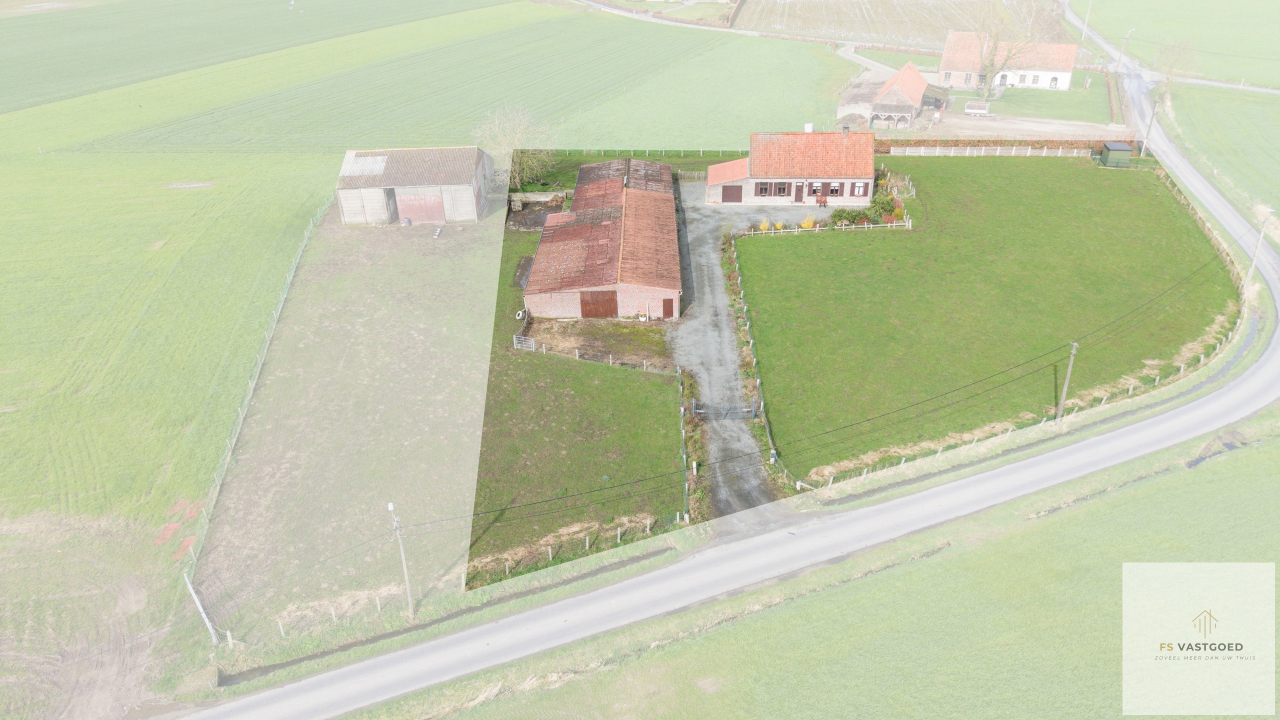 Deze eigendom geniet van een prachtig open zicht over de omliggende velden en biedt een unieke kans voor wie droomt van wonen in alle rust en ruimte.