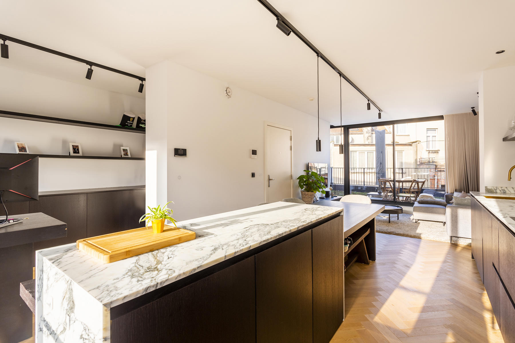 De duplex is volledig bemeubeld tot in het kleinste detail. Dit allemaal met design meubilair wat de ruimtes nog meer tot zijn recht laat komen.