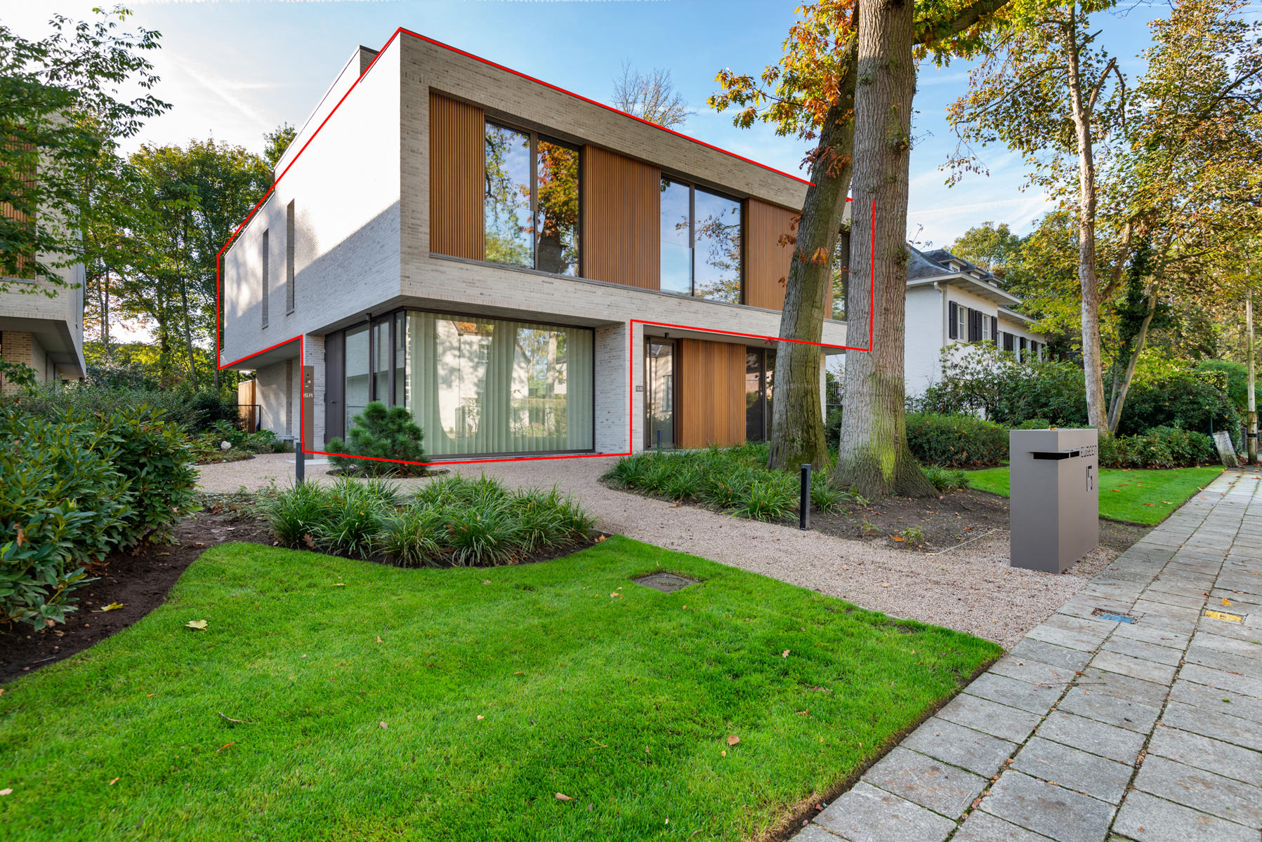 Het leefgedeelte heeft grote raampartijen die ons naar het terras van 34m² brengen met een prachtig zicht op de kijktuin met oude volgroeide bomen.