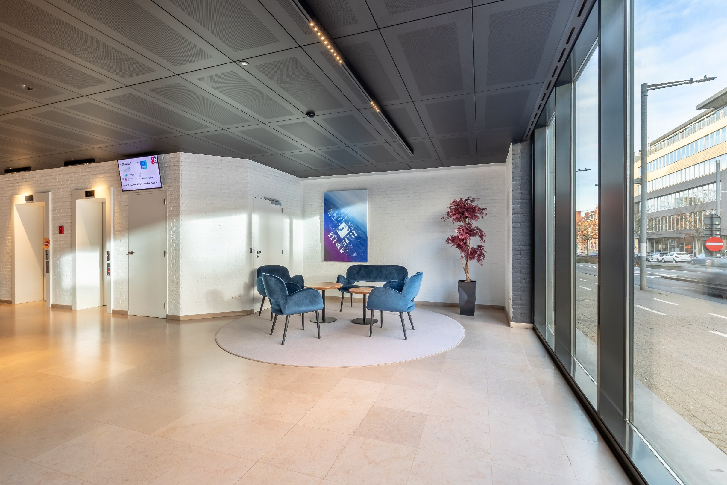 Momenteel is er kantoorruimte beschikbaar op de gelijkvloerse, eerste en zevende verdieping.