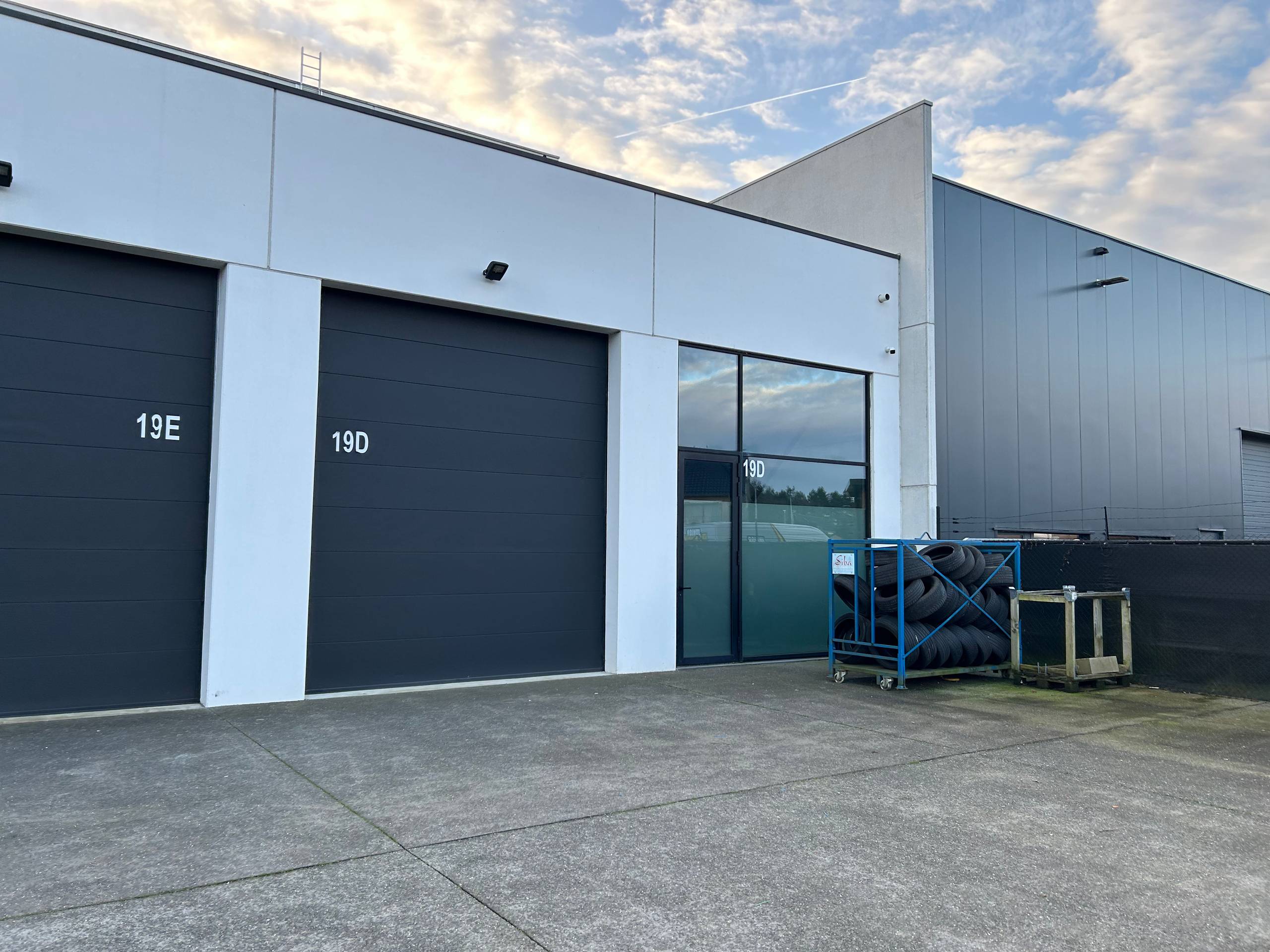 De vrije hoogte bedraagt 5,50 meter. De sectionale poort heeft een hoogte van 4,5 meter. Parking rondom het gebouw is voorzien.