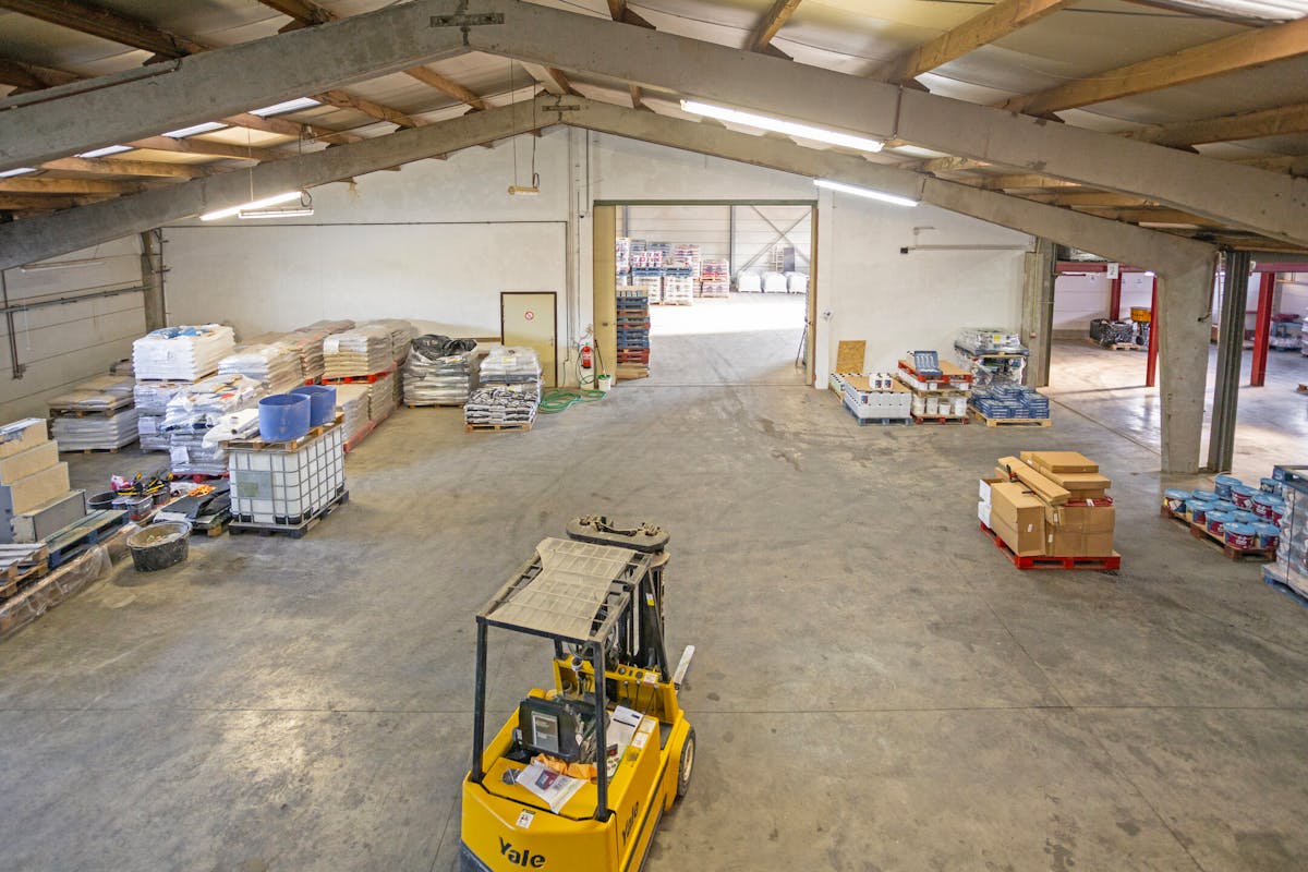 Ce bâtiment commercial est situé dans la rue Remi Claeysstraat à Zedelgem et offre un espace fonctionnel à diverses fins industrielles. Le bâtiment est constitué de panneaux de façade en béton cellulaire. L'accessibilité logistique est garantie par un portail sectionnel d'une hauteur libre de 4,5 mètres. La hauteur de faîtage du bâtiment est de 5,90 mètres.Le toit est doté d'une lucarne centrale laissant entrer la lumière naturelle.Le chauffage interne est assuré par un poêle à bois industriel.Le sol est fait d'un sol en béton ciré.L'entrepôt comprend plusieurs compartiments et est équipé de plusieurs sols en bois et en métal (mezzanines) qui offrent une capacité de stockage supplémentaire au deuxième niveau.L'entrepôt est situé dans la zone industrielle de Zedelgem, ce qui garantit une connexion fluide avec les axes de circulation environnants et les autoroutes E40/E403.
