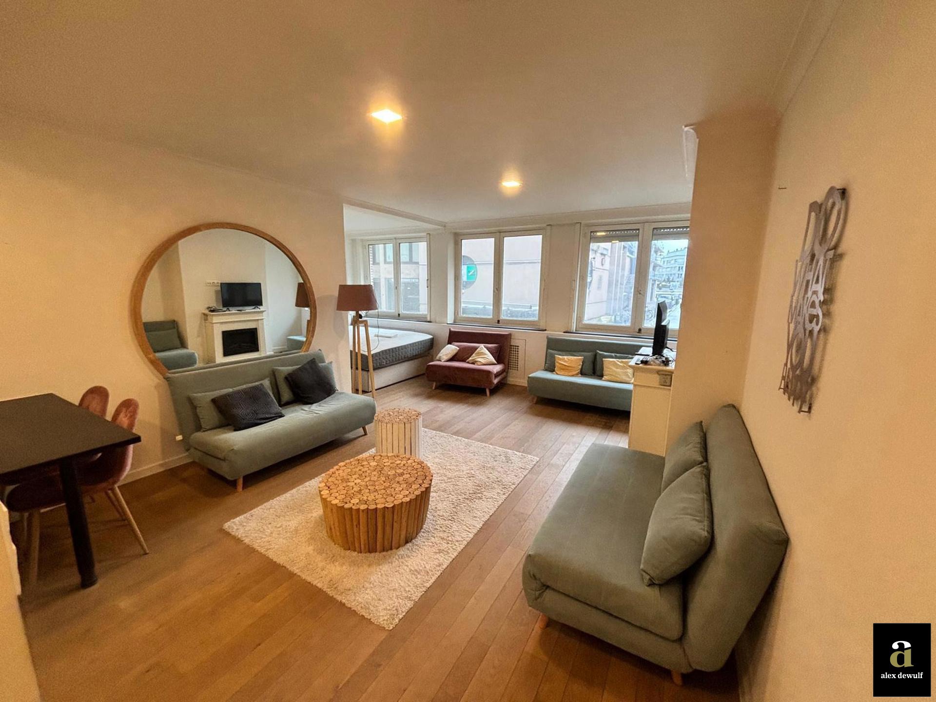 Studio spacieux situé dans un immeuble à l’angle de la digue et de l’avenue Léopold. Excellente situation en bord de mer et à proximité immédiate de la Lippenslaan. Vue latérale sur la mer.