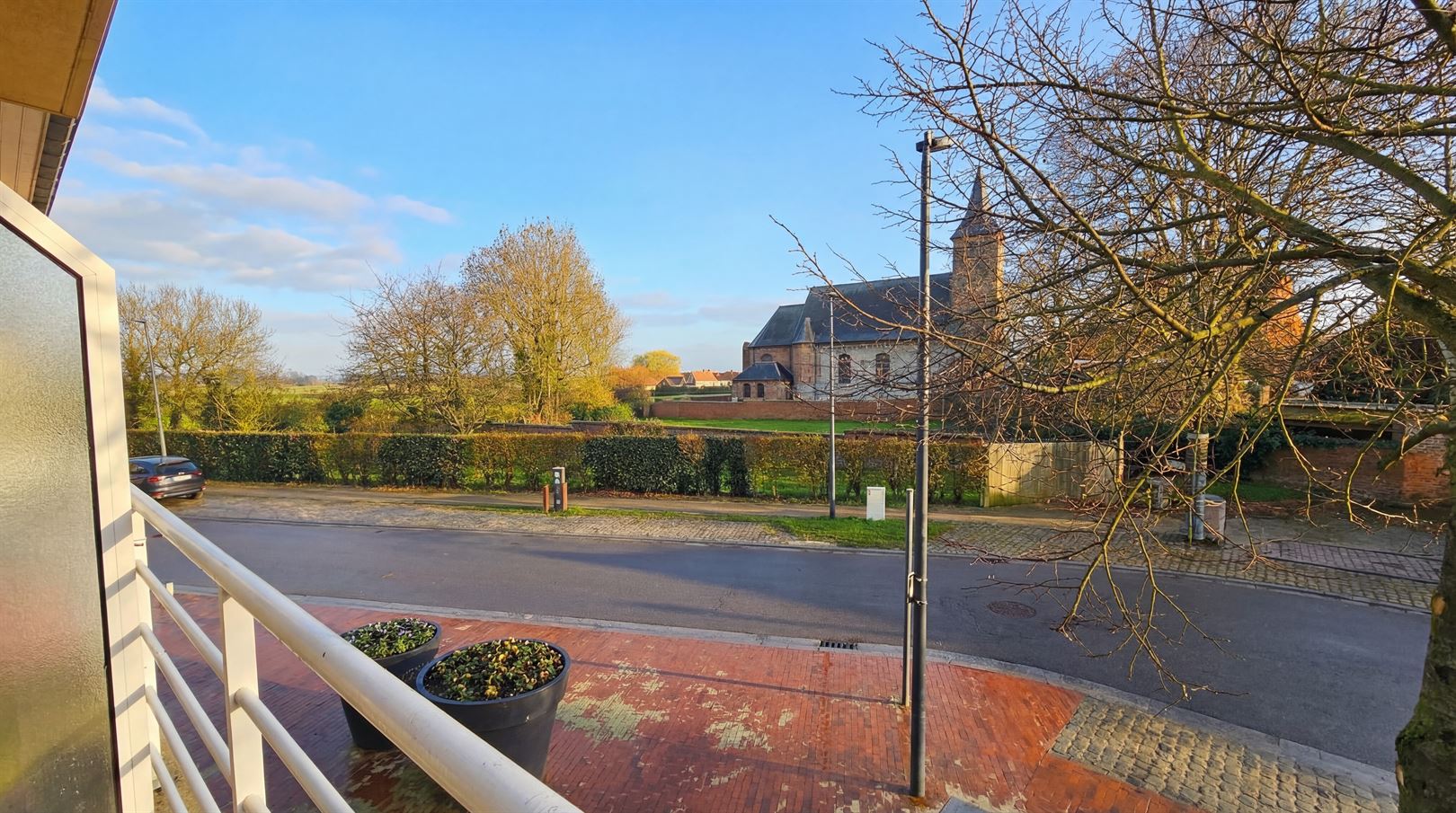 App. 2 chambres sur la place d'Helchin. Contient: hall d'entrée, living + cuisine equipée, buanderie, toilet, salle de bains, 2 chambres.