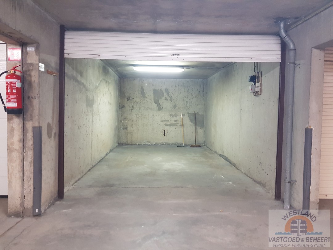 Ruime garagebox met elektriciteit in afgesloten ondergrondse parkeergarage.