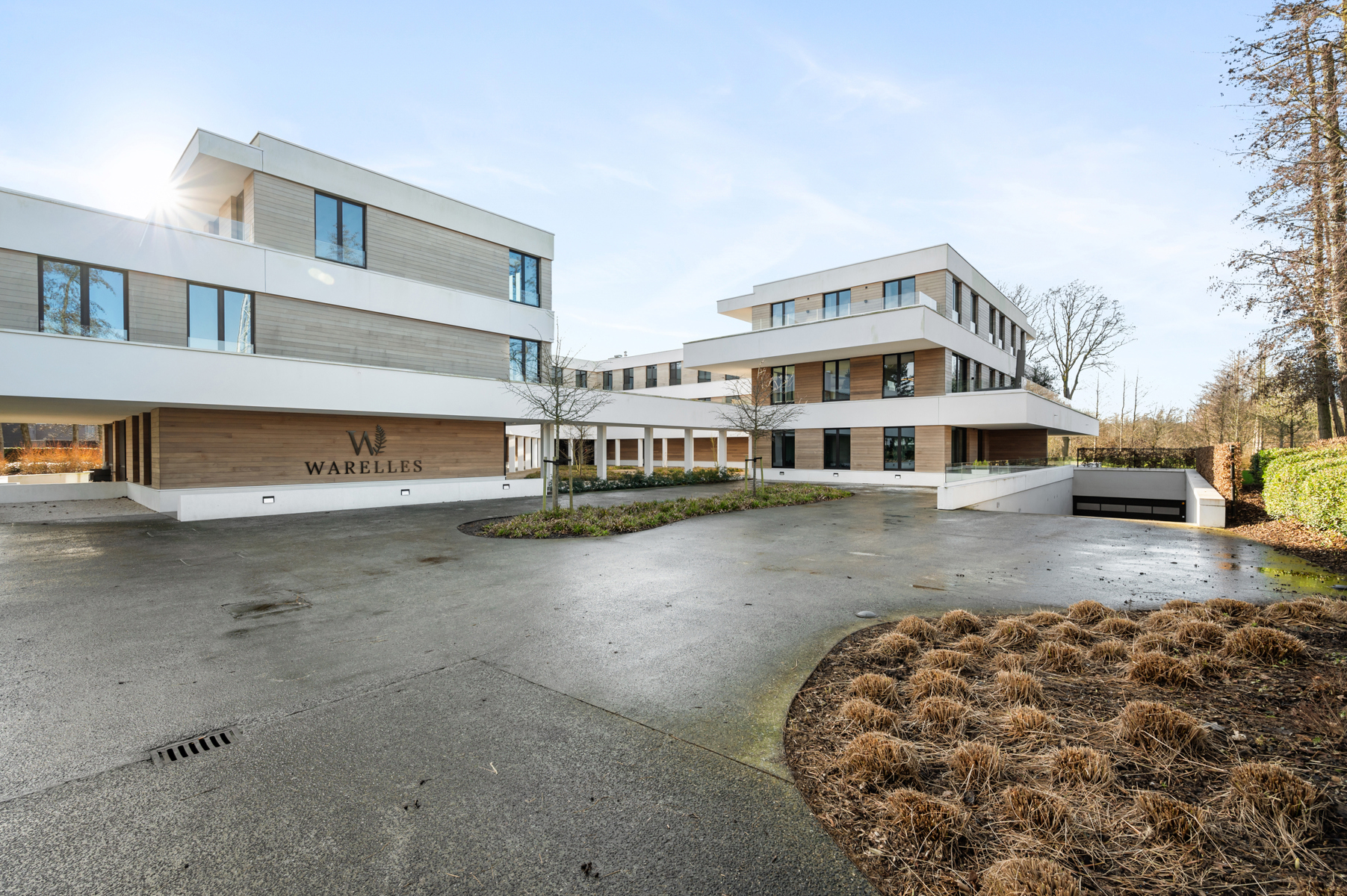 De indeling is als volgt: inkhomhal met vestiaire, gastentoilet, open geïnstalleerde keuken, zeer lichtrijke leefruimte, aparte berging/wasplaats, 2 ruime slaapkamers waarvan één met ensuite badkamer (lavabomeubel, inloopdouchedouche), master bedroom met ensuite badkamer (dubbel lavabomeubel, toilet en inloopdouche). 2 zonnige terrassen waarvan 1 deels overdekt (beiden met zicht op het groen!)