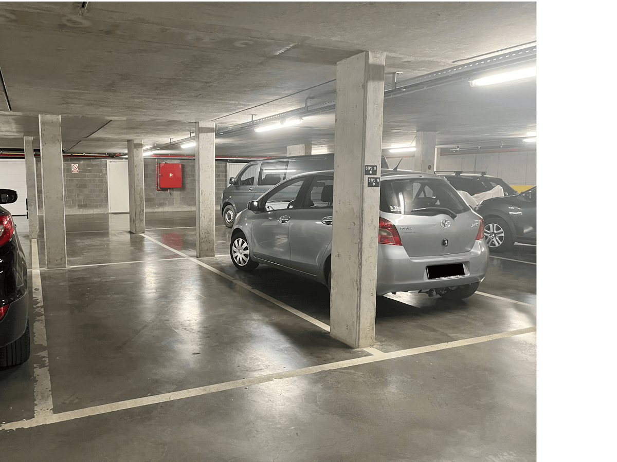 Parking sur le Westkaai à Ypres dans la résidence Hooge Vaart. Le parking souterrain est fermé par un portail automatique. Disponible à partir du 01/06/2026.