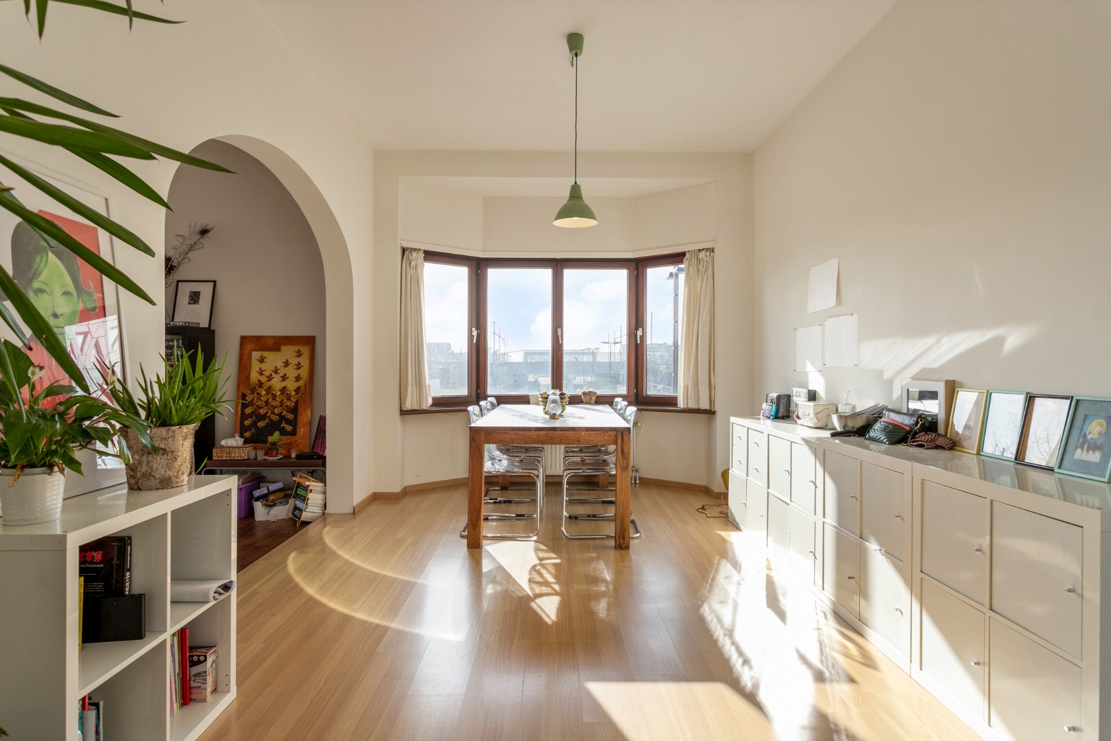 De indeling van het appartement: inkomhal, kleine slaapkamer, badkamer met douche en wastafel, keuken, eetplaats, woonplaats, technische berging met aansluiting wasmachine, 2 slaapkamers, badkamer met ligbad en lavabo en een terras aan de achterzijde van het gebouw. De keuken is uitgerust met een vierpits elektrisch kookvuur, oven en aansluiting voor een vaatwasmachine. Huurprijs: € 1.200,00/ maand. Algemene kosten: € 20,00 (forfait: verlichting en onderhoud installaties gemene delen). EGW apart (niet inbegrepen). Onmiddellijke beschikbaar.