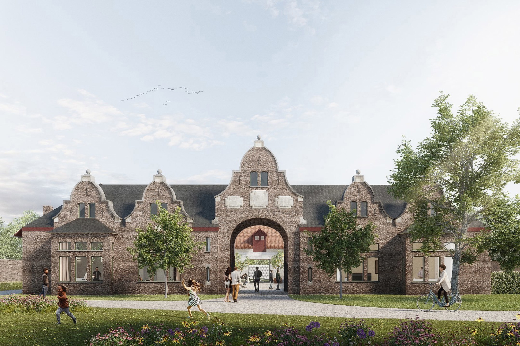 Ce nouvel immeuble de bureaux fait partie d'un site récemment aménagé, situé au cœur de Zwijnaarde. La ferme-château jouxte le magnifique parc Ghellinck et bénéficie d'une vue dégagée sur la verdure environnante.