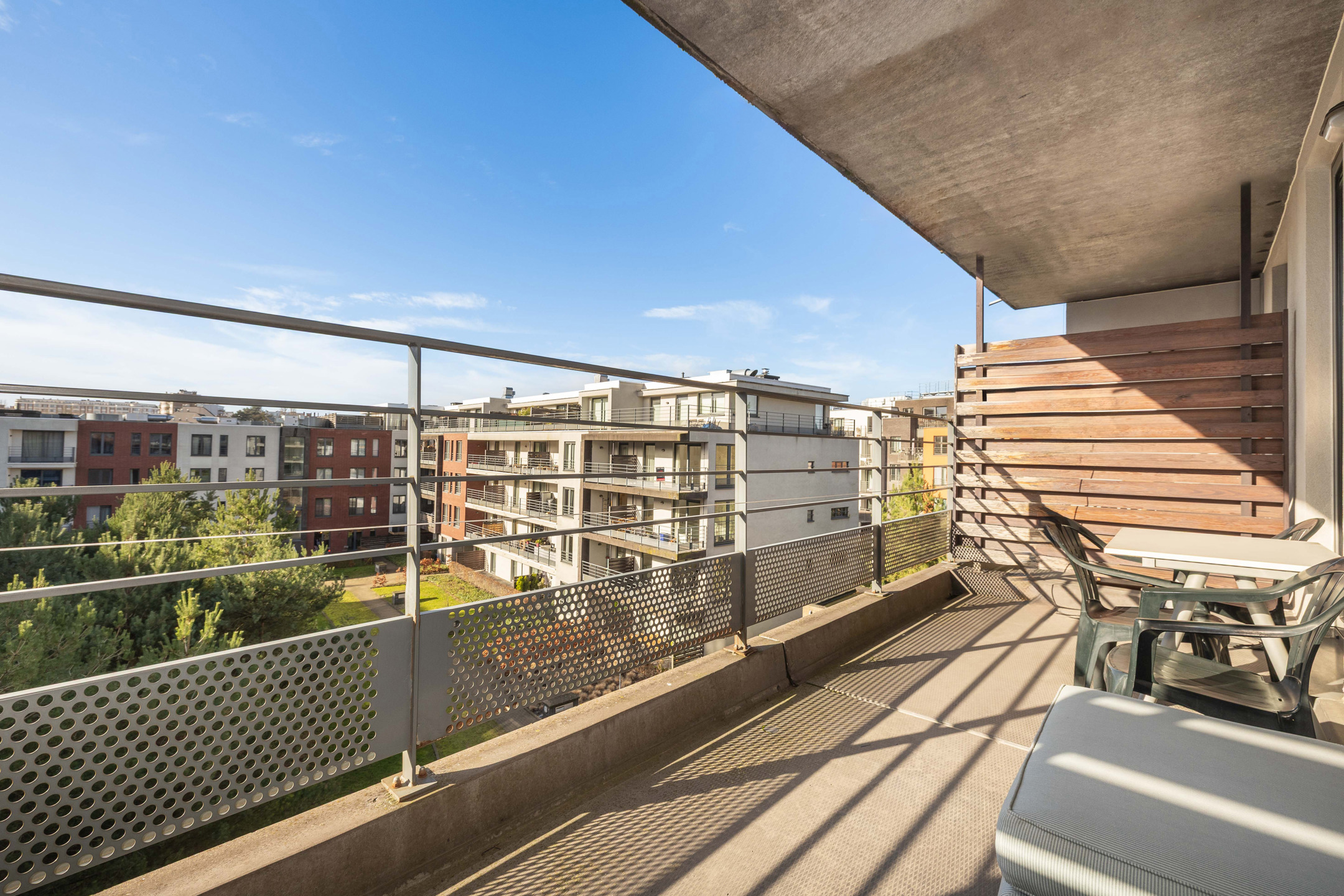 L’appartement se compose d’un agréable hall d’entrée avec WC invités, d’un lumineux séjour de ± 34 m² avec cuisine ouverte entièrement équipée, de deux chambres confortables, d’une salle de bains ainsi que d’une terrasse de ± 12 m² idéale pour profiter des beaux jours.