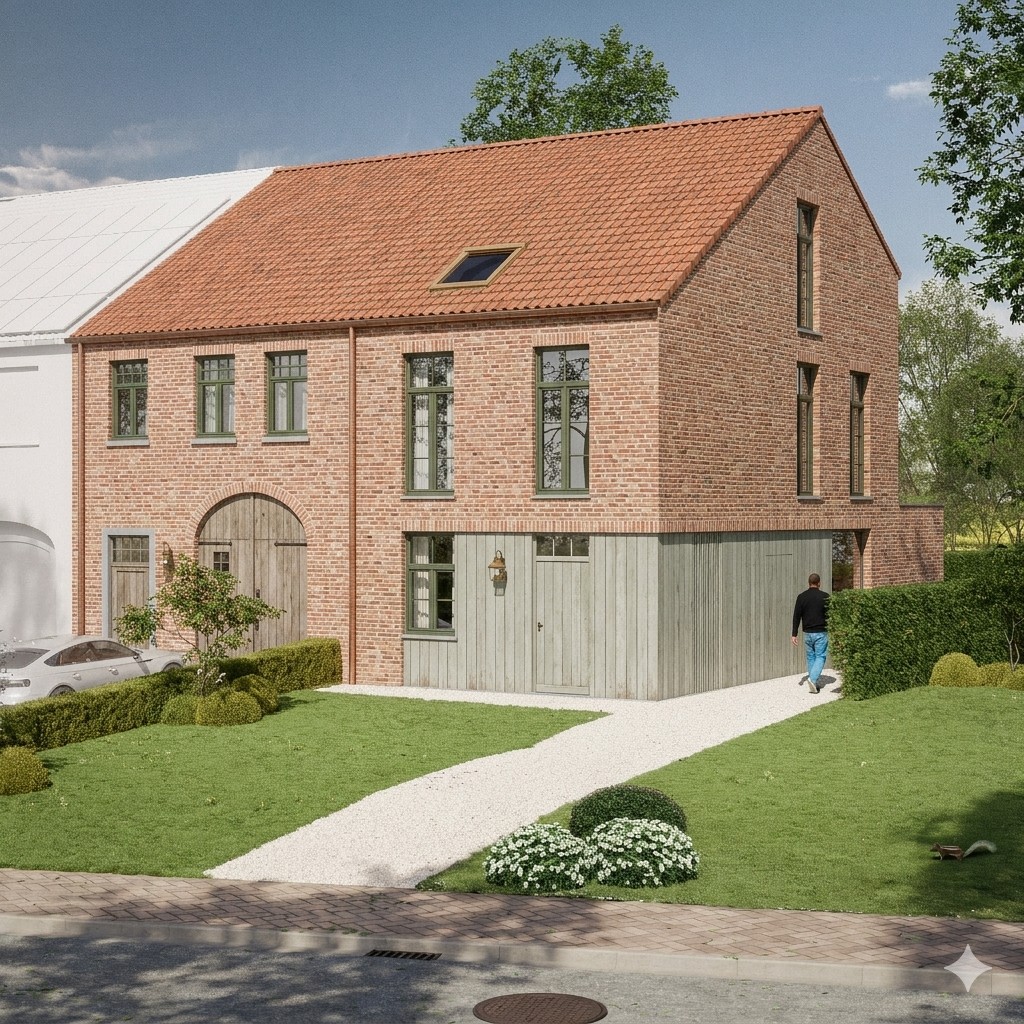 👉 Om het potentieel maximaal te tonen, werden ook hier renderbeelden toegevoegd van mogelijke woningen (modern / landelijk). Zo krijg je meteen een concreet beeld van wat hier gebouwd kan worden.