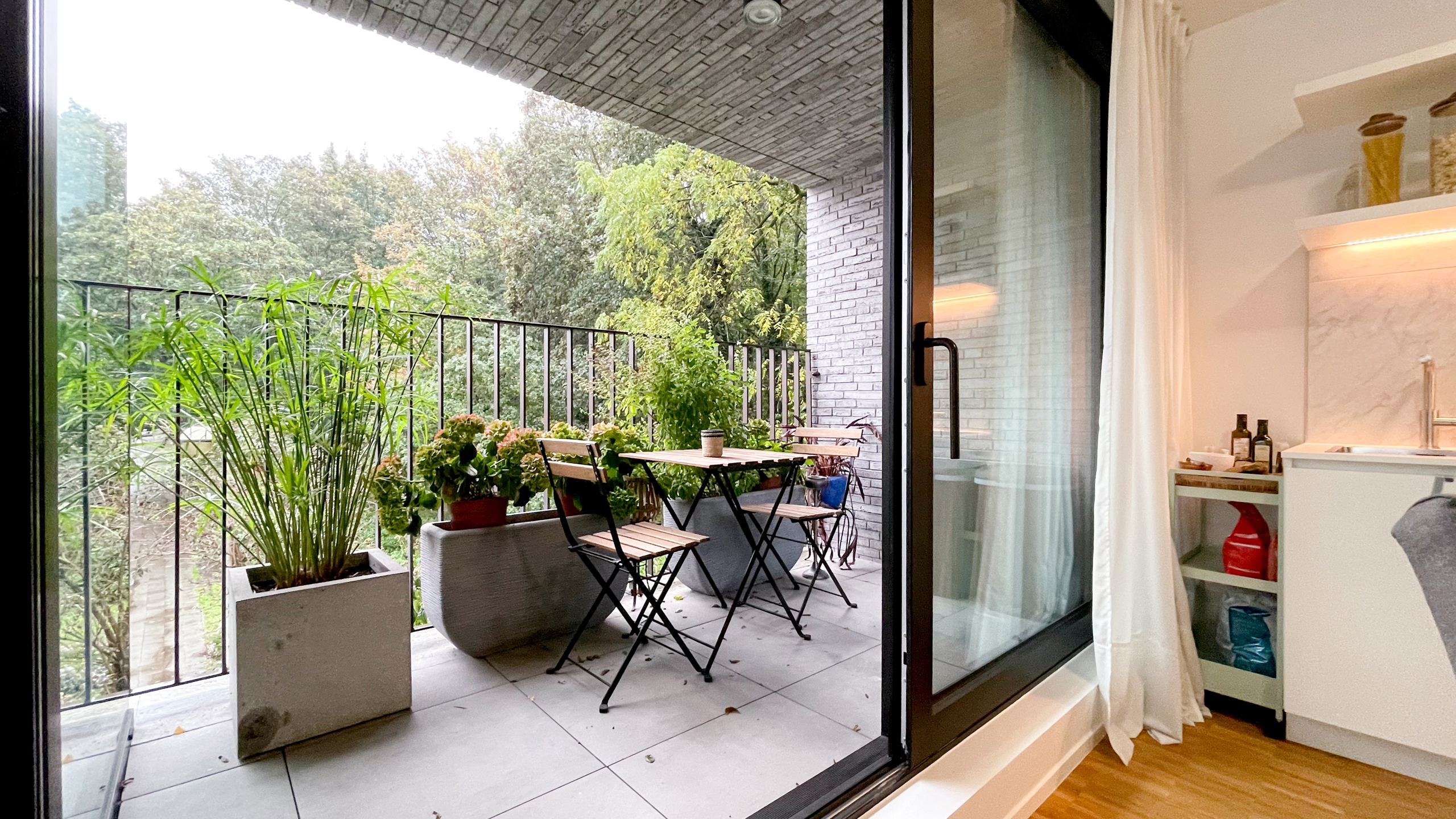 Conçu par M2 Architecten, l’appartement bénéficie de finitions haut de gamme. Le séjour avec cuisine ouverte dispose d’un parquet continu et donne un accès direct à la terrasse orientée sud-est, d’où vous pourrez profiter en toute tranquillité de la vue sur le parc Hof van Leysen.
