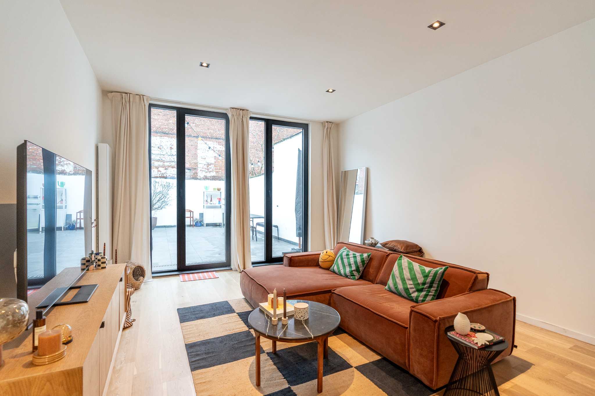 Achter de verzorgde, witte gevel schuilt een woning die hedendaags wooncomfort harmonieus combineert met authentieke elementen. De ruime keuken sluit naadloos aan op de lichtrijke leefruimte, die dankzij de grote raampartijen uitgeeft op een gezellige stadstuin. Zo ontstaat een aangename connectie tussen binnen en buiten — ideaal om te ontspannen of gasten te ontvangen voor een gezellige barbecue.