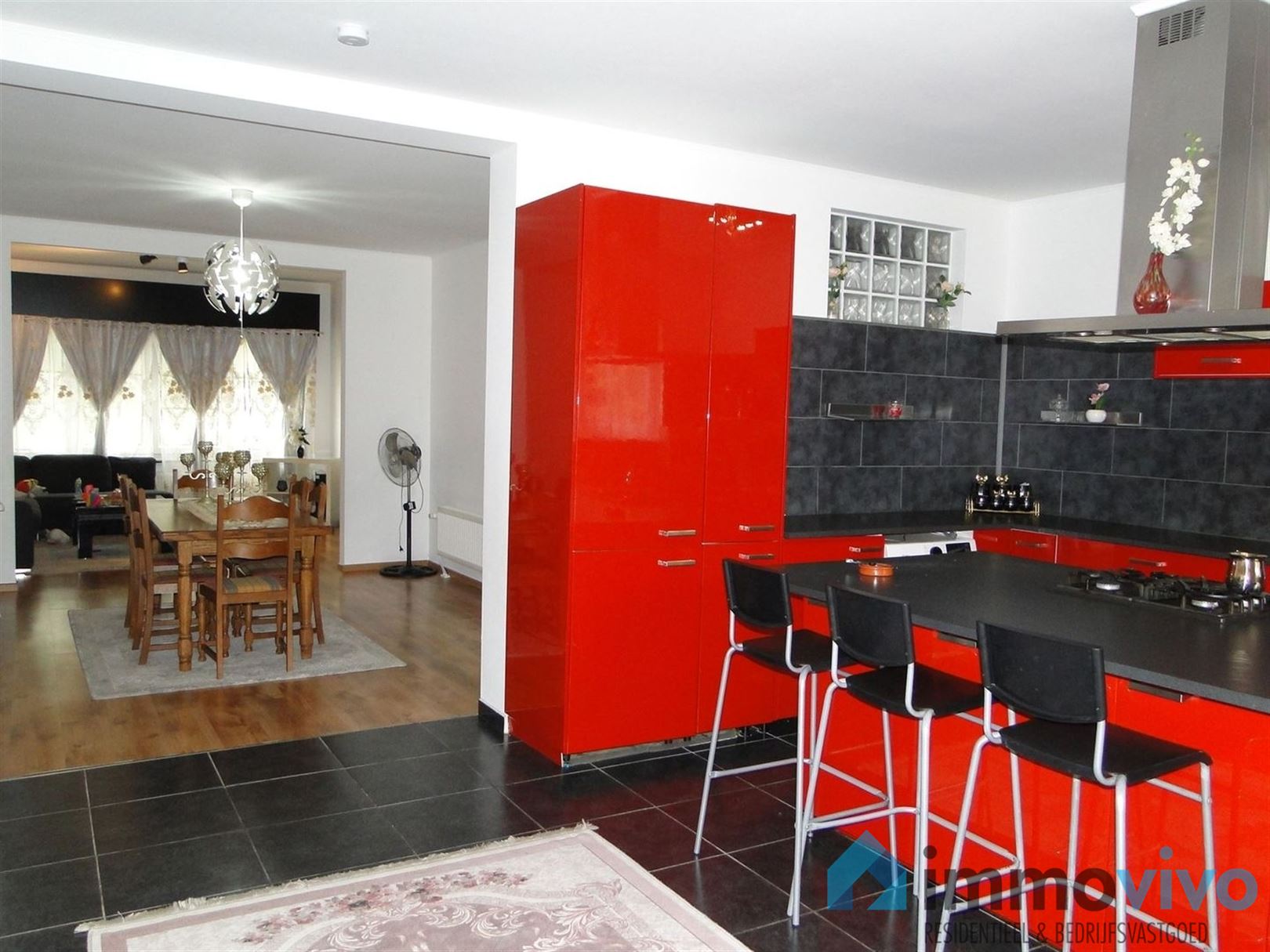 We betreden de woning via een compacte inkomhal. We genieten van een grote living op laminaatparket met een prachtig ingerichte open keuken met zicht op tuin.