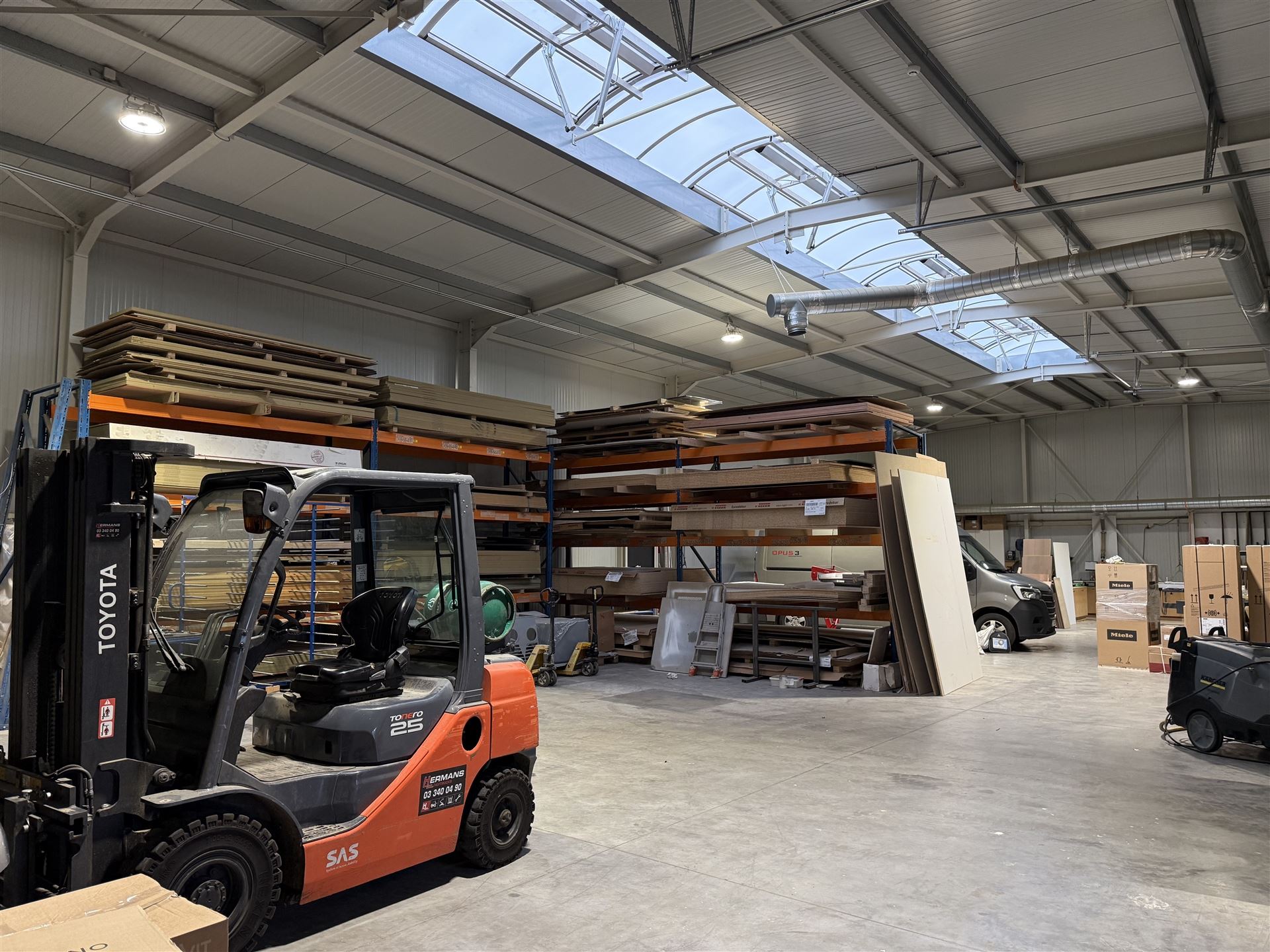 - 1 magazijn van +/- 245m2 + bureel van +/- 95m2