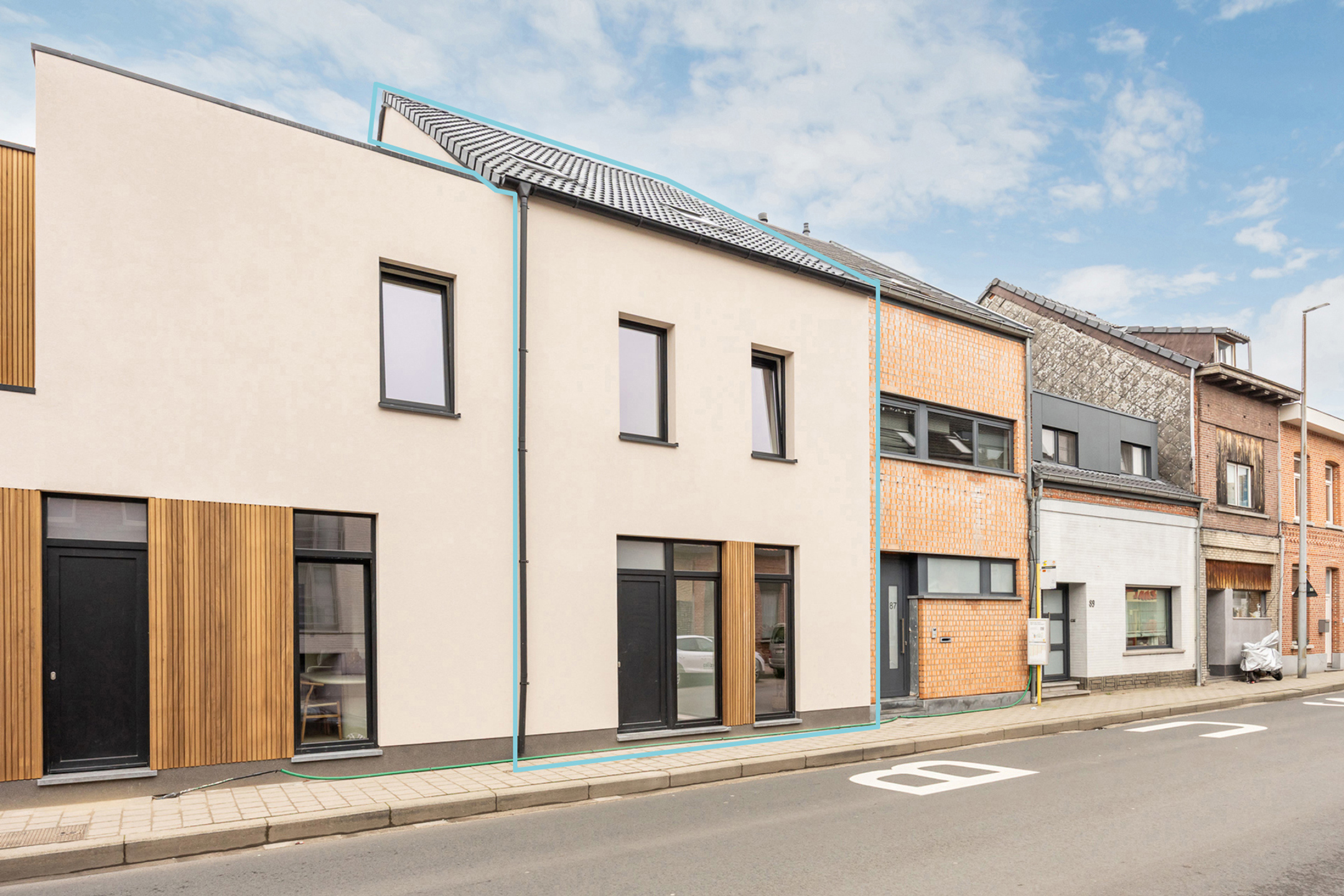 Indeling: -1: kelder. +0: inkomhal - woonkamer - berging - gastentoilet - eetkamer met open keuken. +1: twee slaapkamers - badkamer. +2: twee slaapkamers - ruime overloop.
